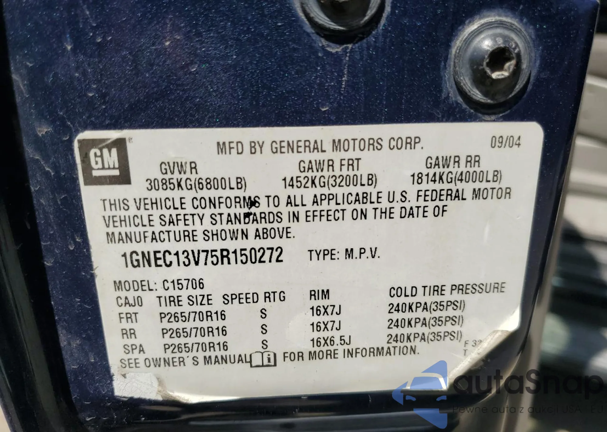 • VIN: 1GNEC13V75R150272