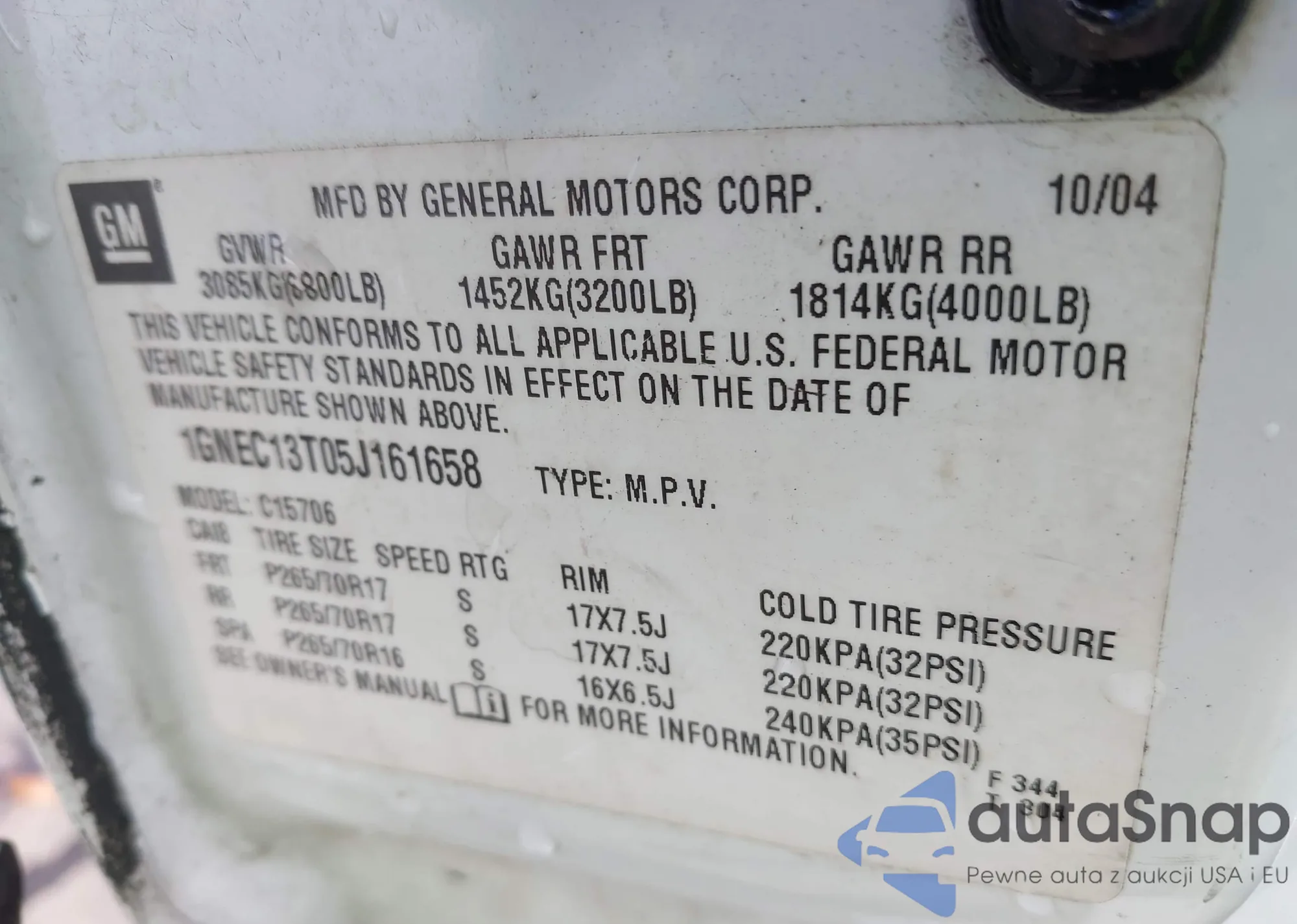 VIN: 1GNEC13T05J161658