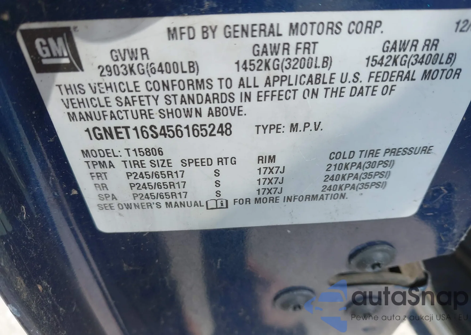 • VIN: 1GNET16S456165248