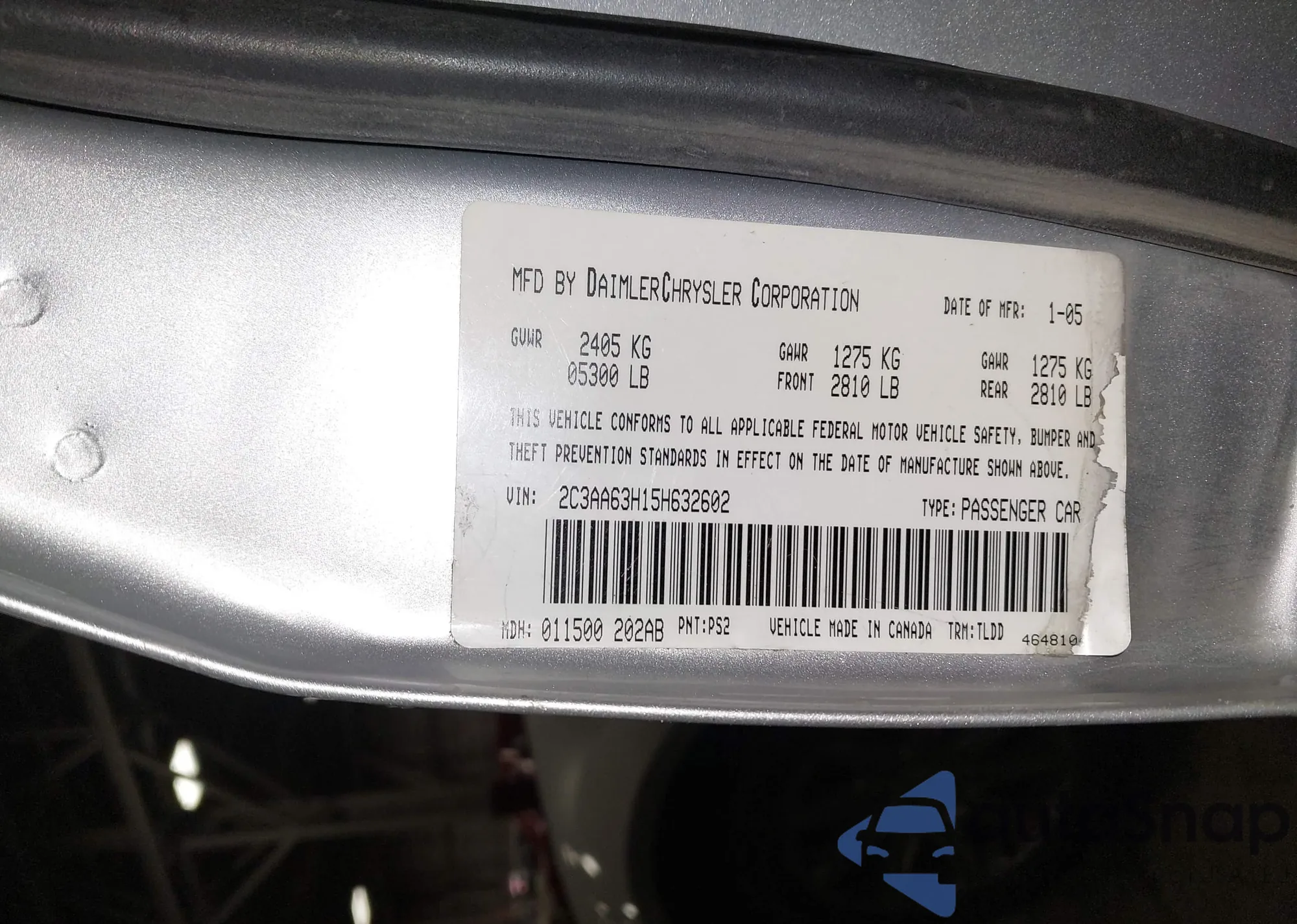 Samochód Chrysler 300C 2005 (VIN 2C3AA63H15H632602) nie był wcześniej licytowany. Dokumenty są czyste, przebieg odpowiada lub jest niższy niż średnia rynku. Sprzedaje go firma ubezpieczeniowa – polecamy zakup. Dostawa do portu zajmie ok. 6–8 tygodni.