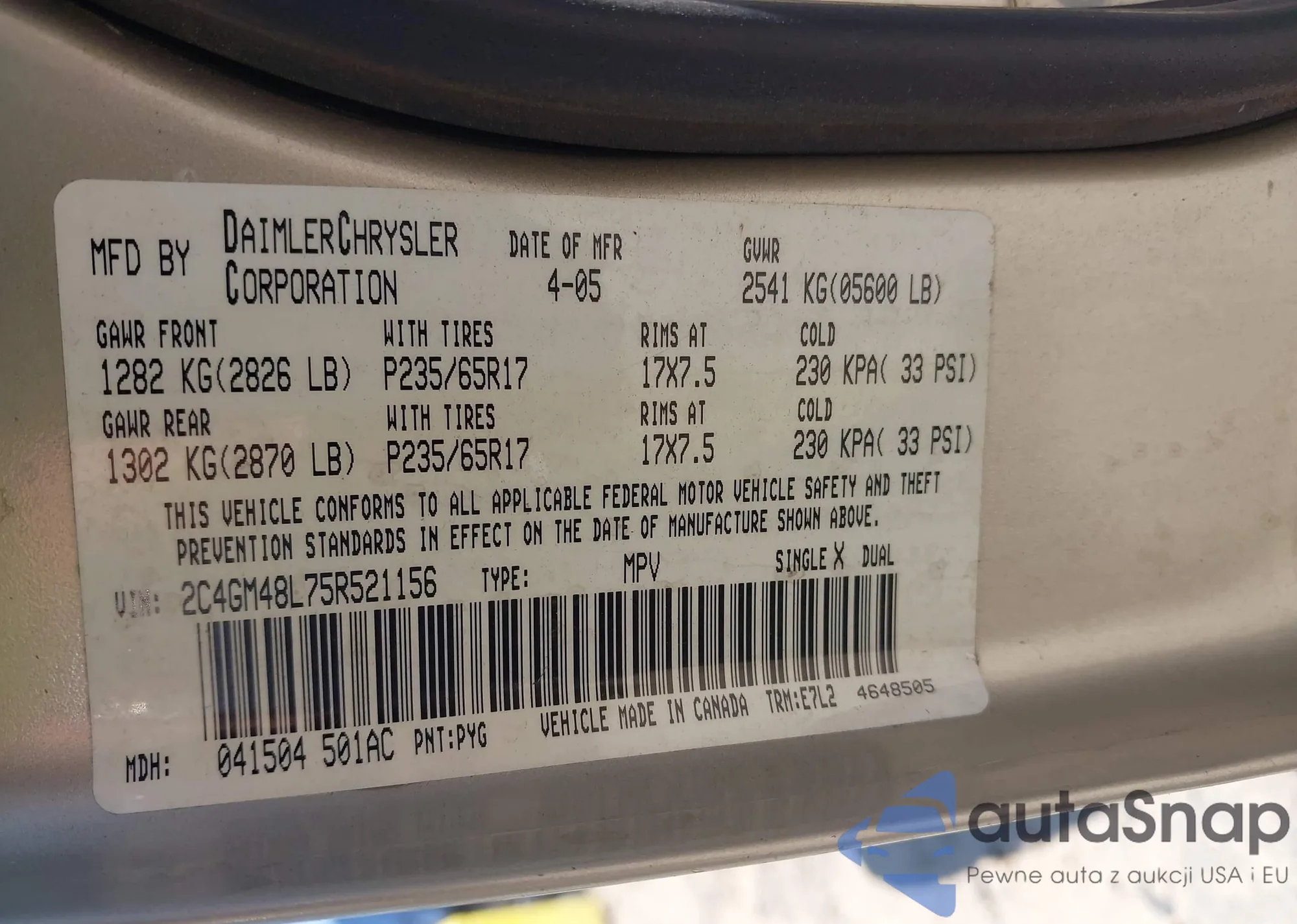VIN: 2C4GM48L75R521156