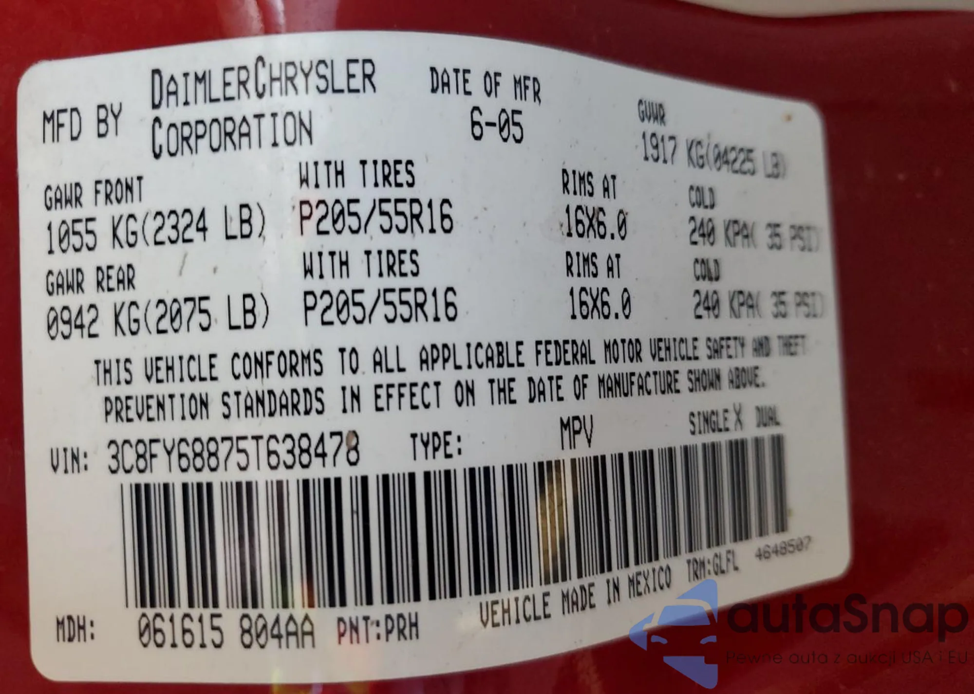 VIN: 3C8FY68875T638478
