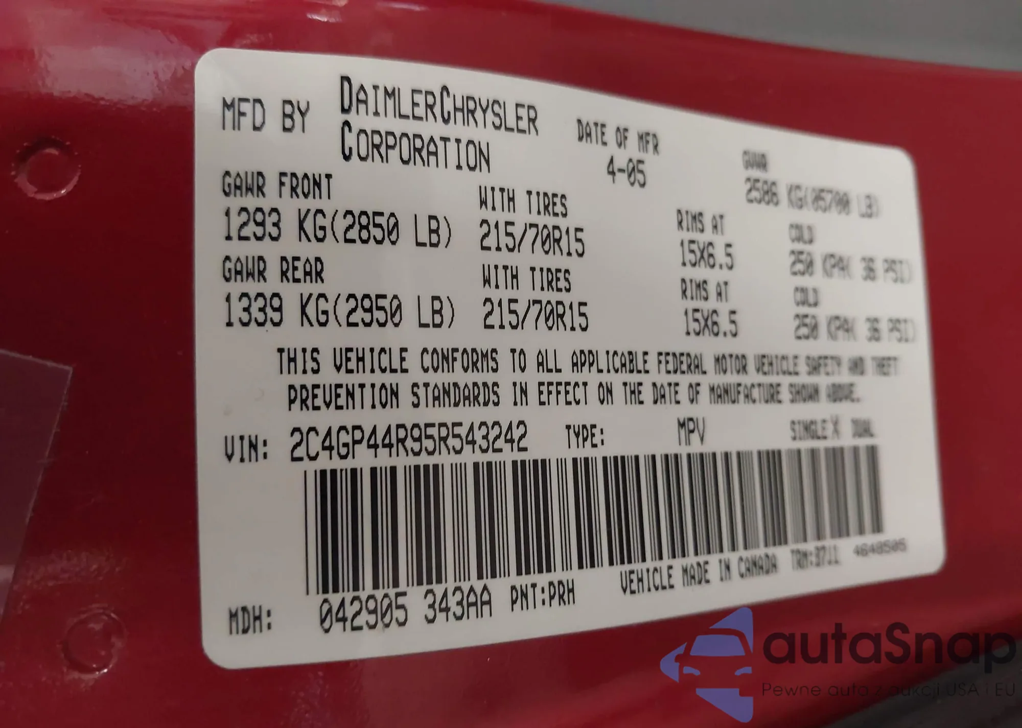 VIN: 2C4GP44R95R543242