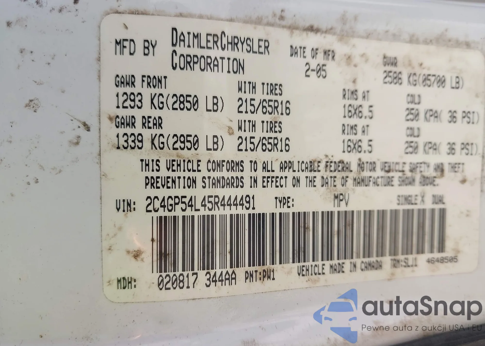 Samochód Chrysler Town & Country 2005 (VIN 2C4GP54L45R444491) ma dokumenty uniemożliwiające rejestrację. Mogą pojawić się trudności przy eksporcie i rejestracji. Skontaktuj się z ekspertami AutaSnap w celu znalezienia alternatywy.