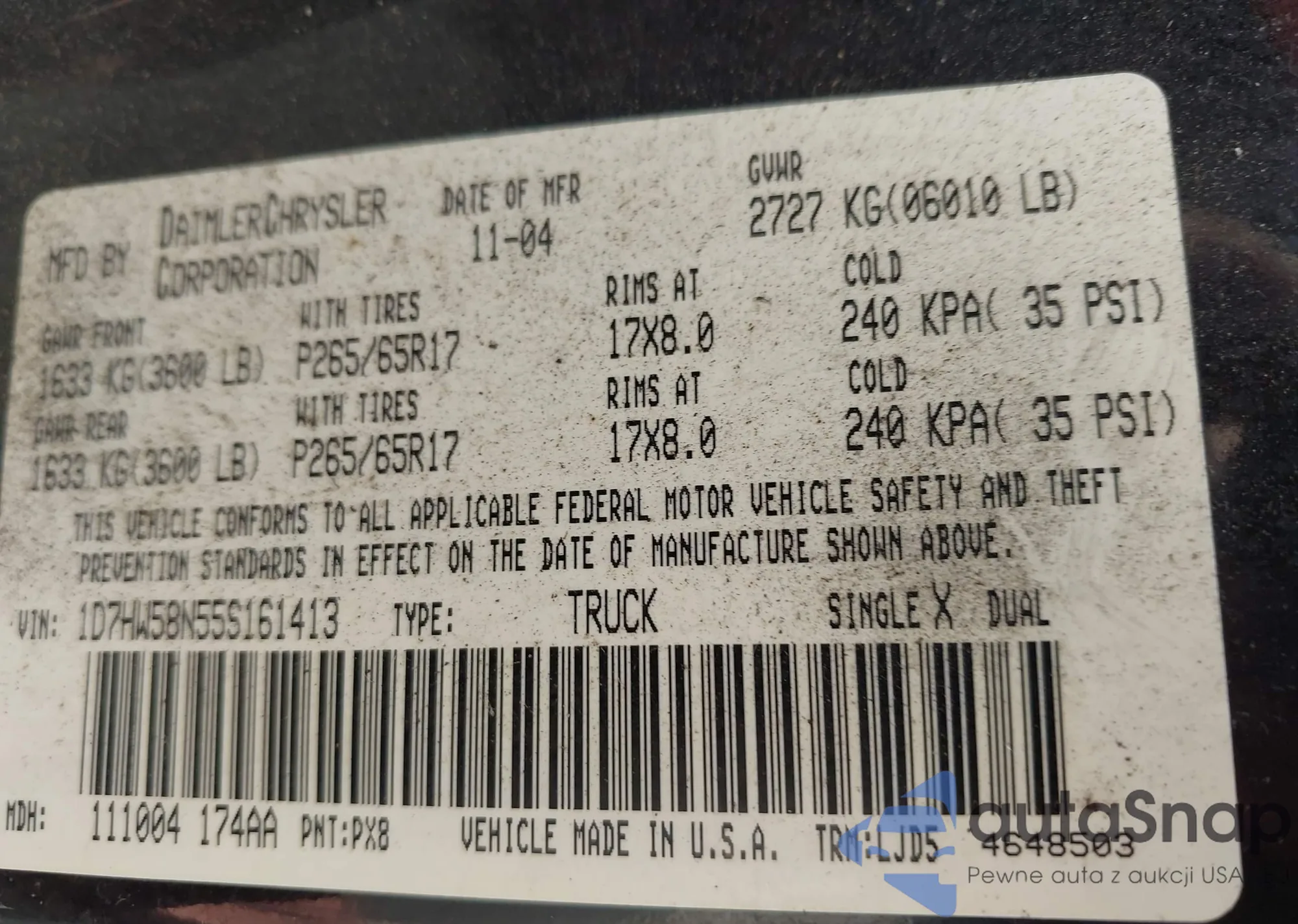 VIN: 1D7HW58N55S161413