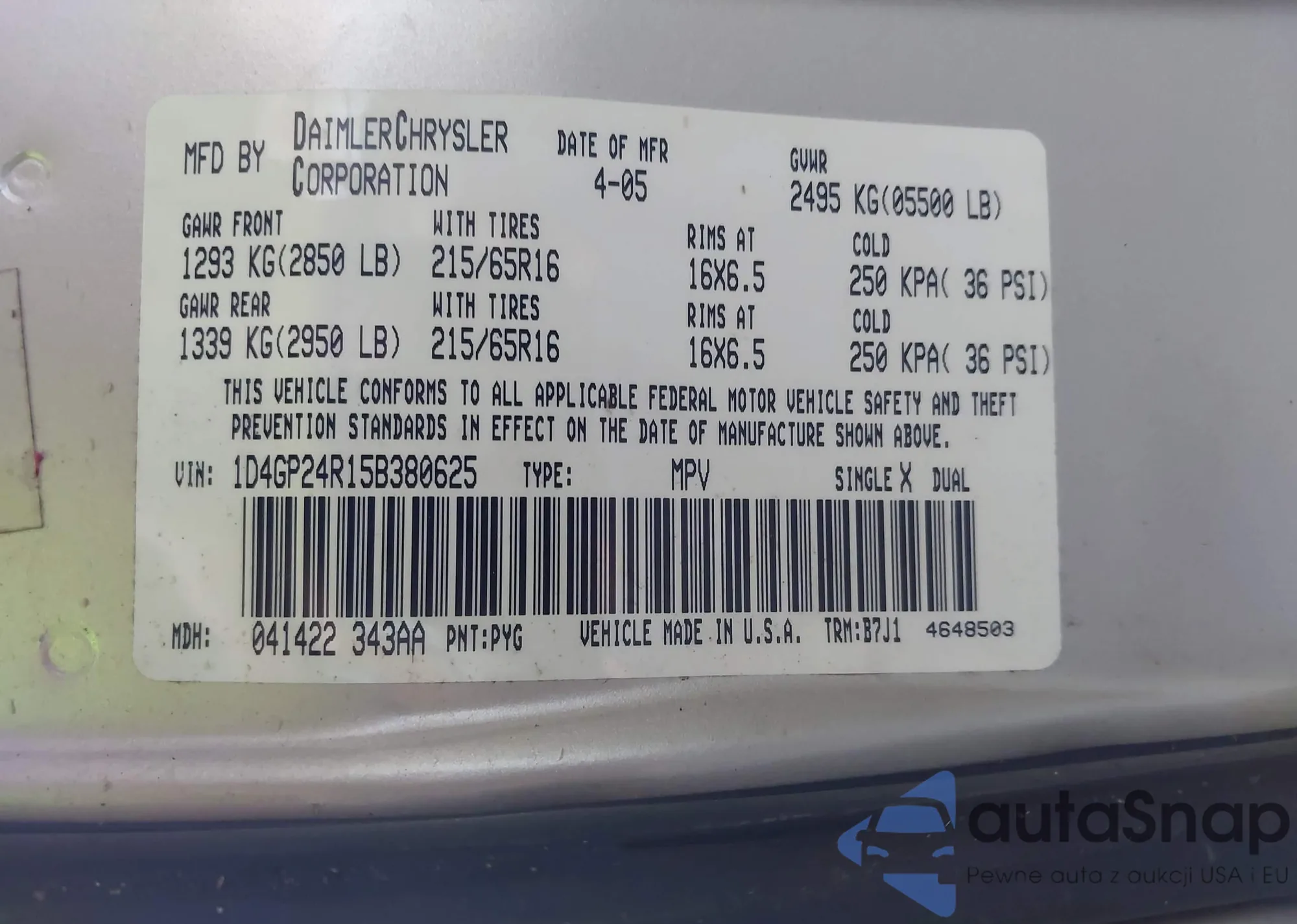 VIN: 1D4GP24R15B380625