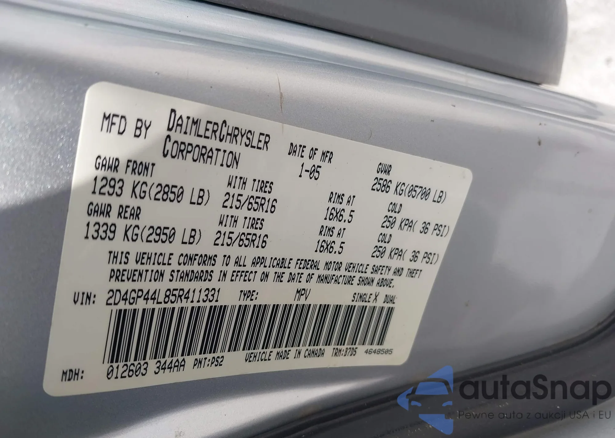 • VIN: 2D4GP44L85R411331