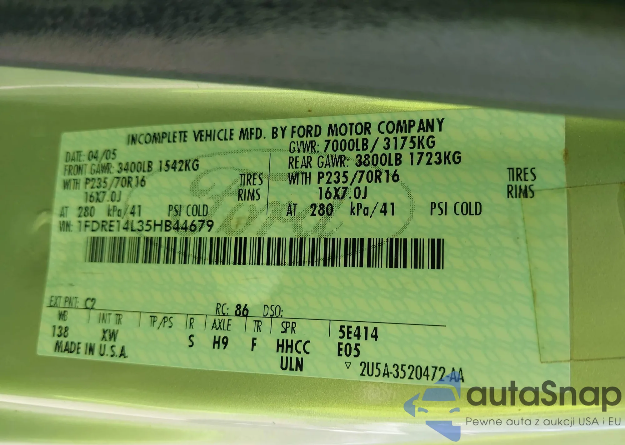 VIN: 1FDRE14L35HB44679