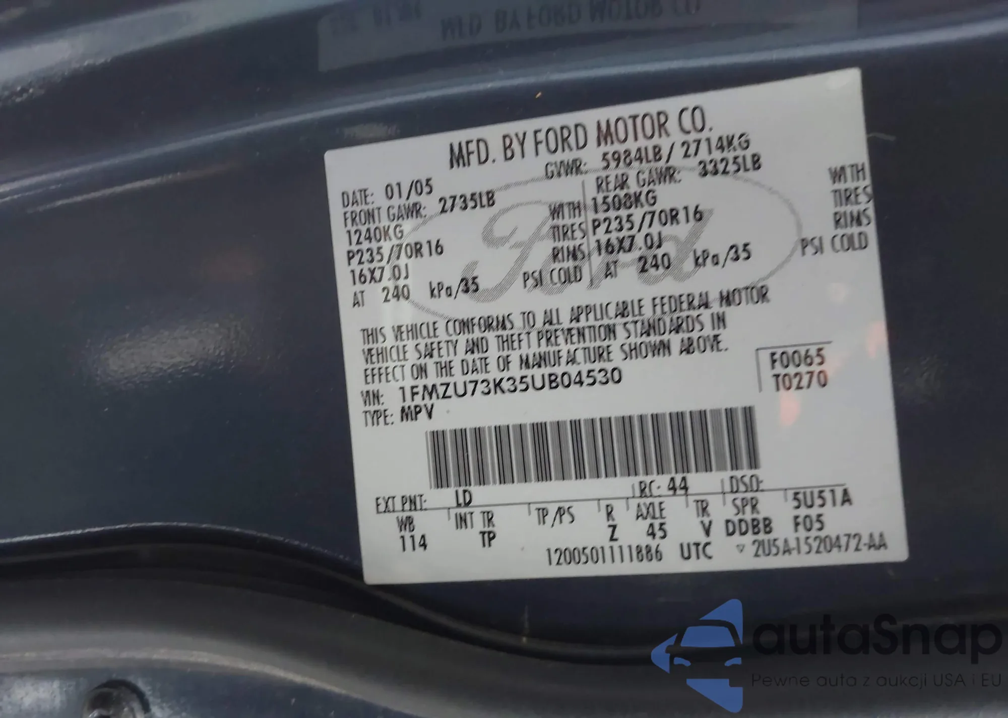 VIN: 1FMZU73K35UB04530