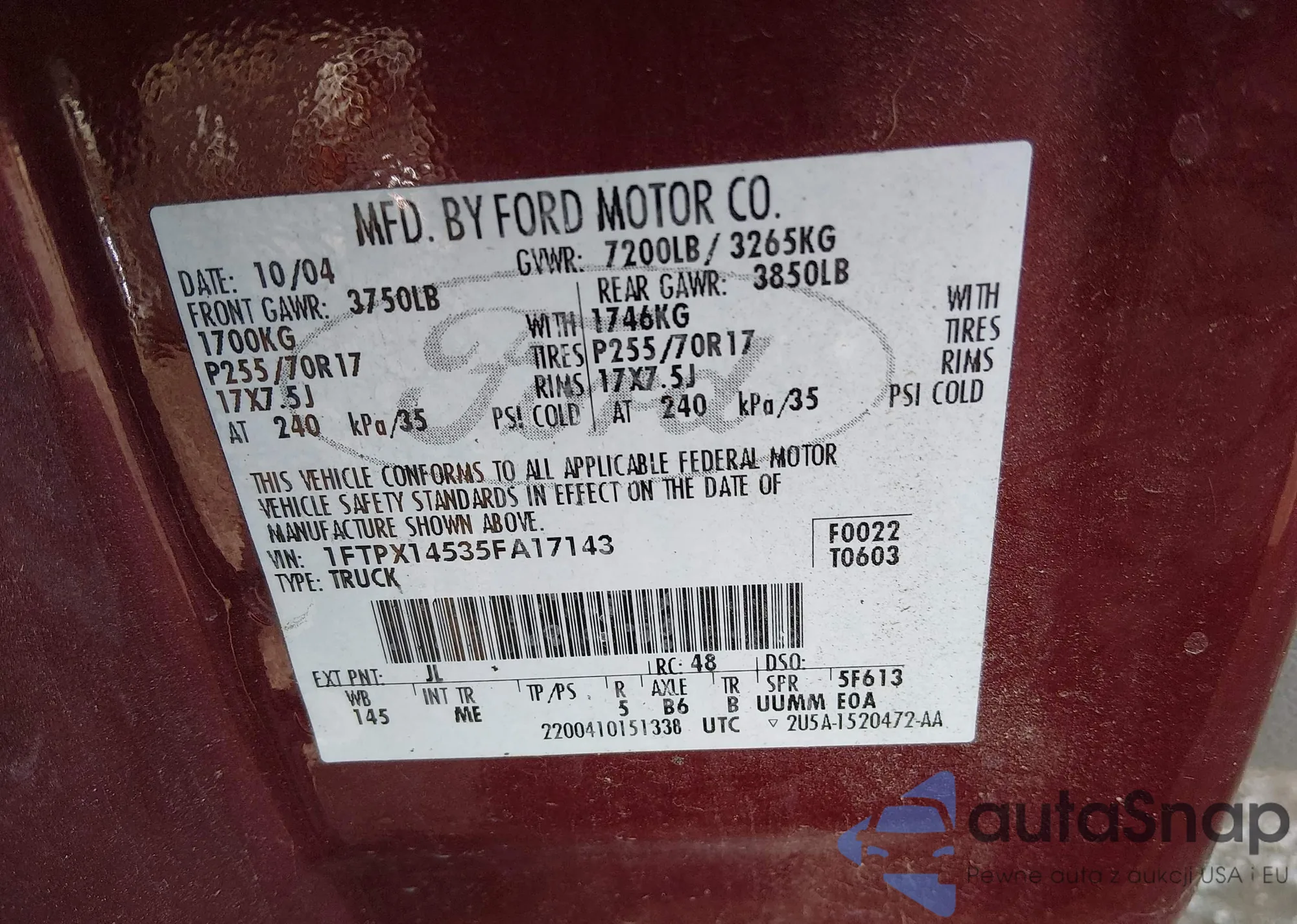 VIN: 1FTPX14535FA17143
