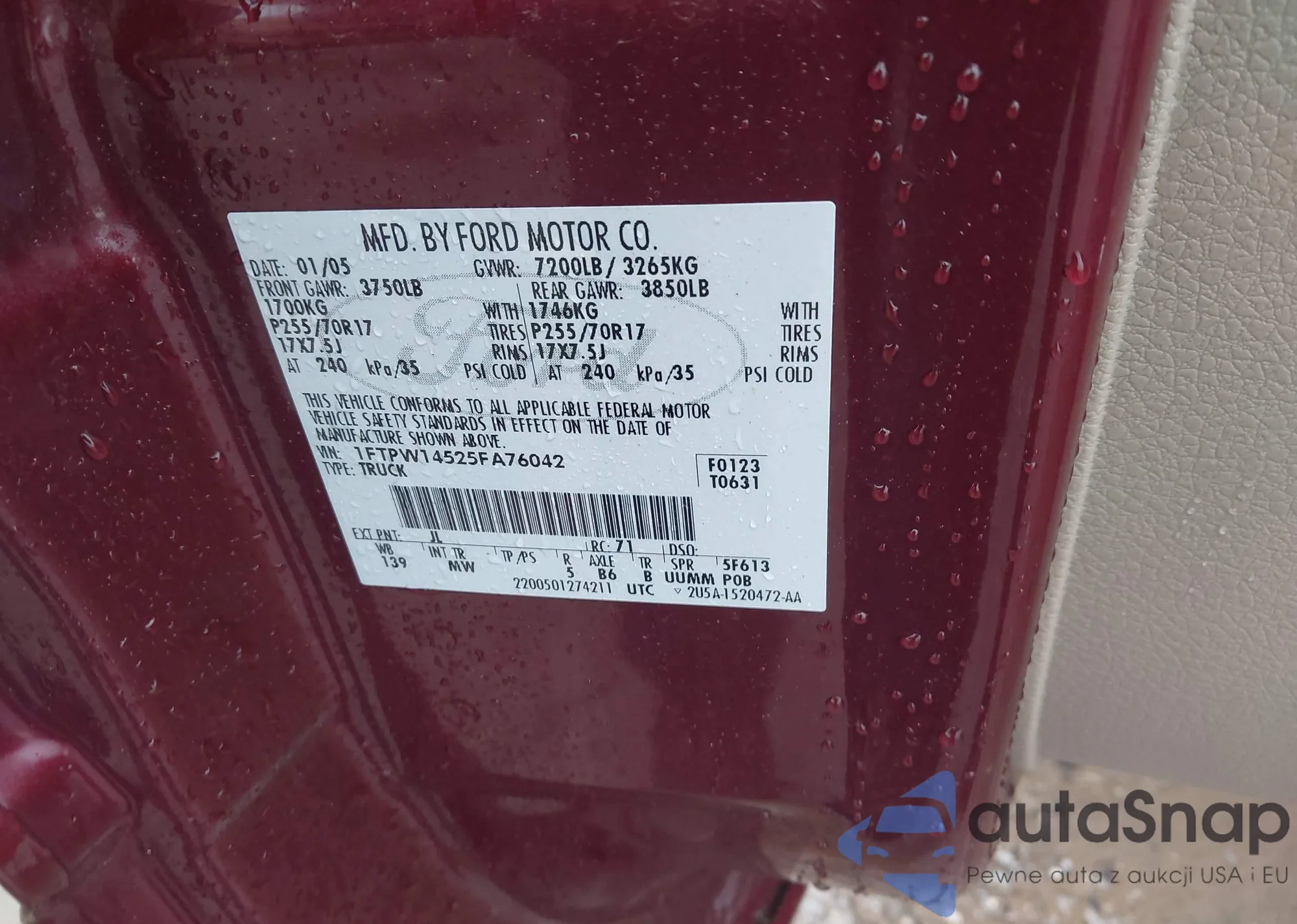VIN: 1FTPW14525FA76042