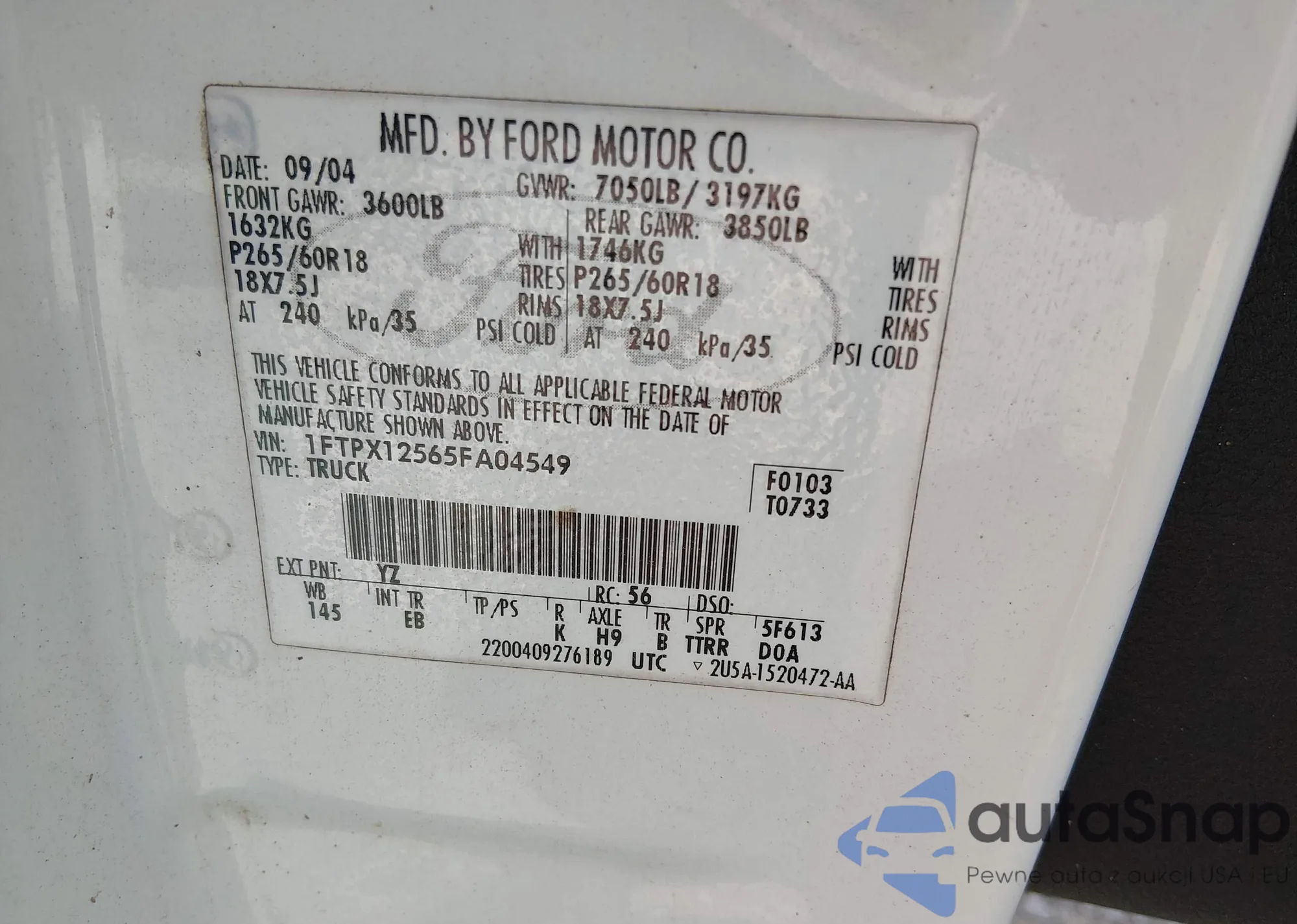 • VIN: 1FTPX12565FA04549