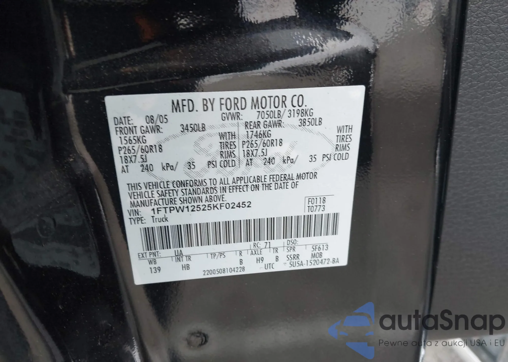 VIN: 1FTPW12525KF02452