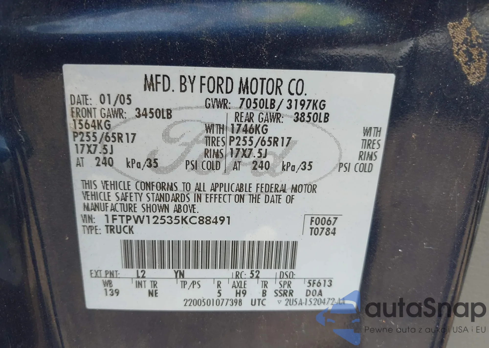 VIN: 1FTPW12535KC88491