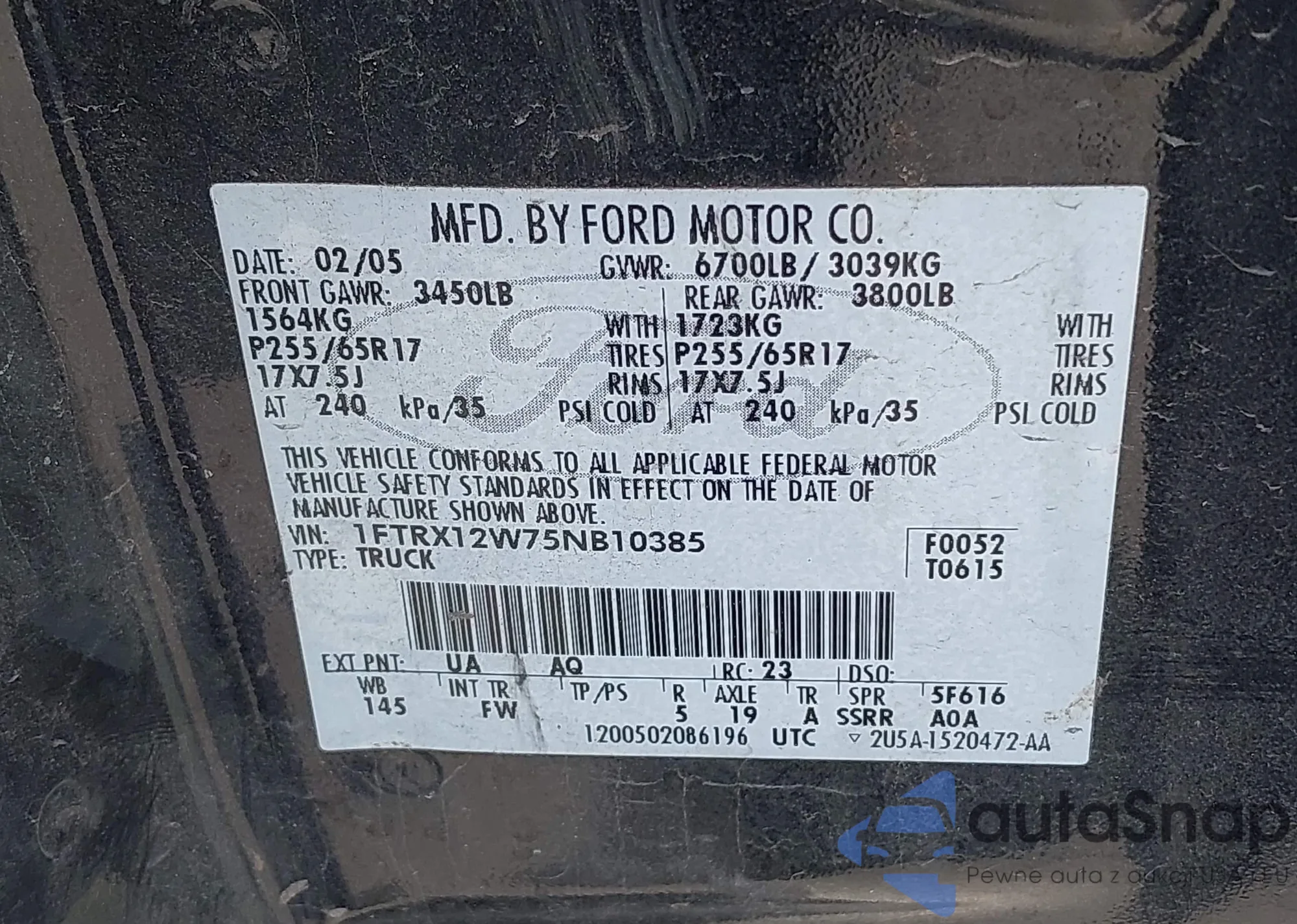• VIN: 1FTRX12W75NB10385