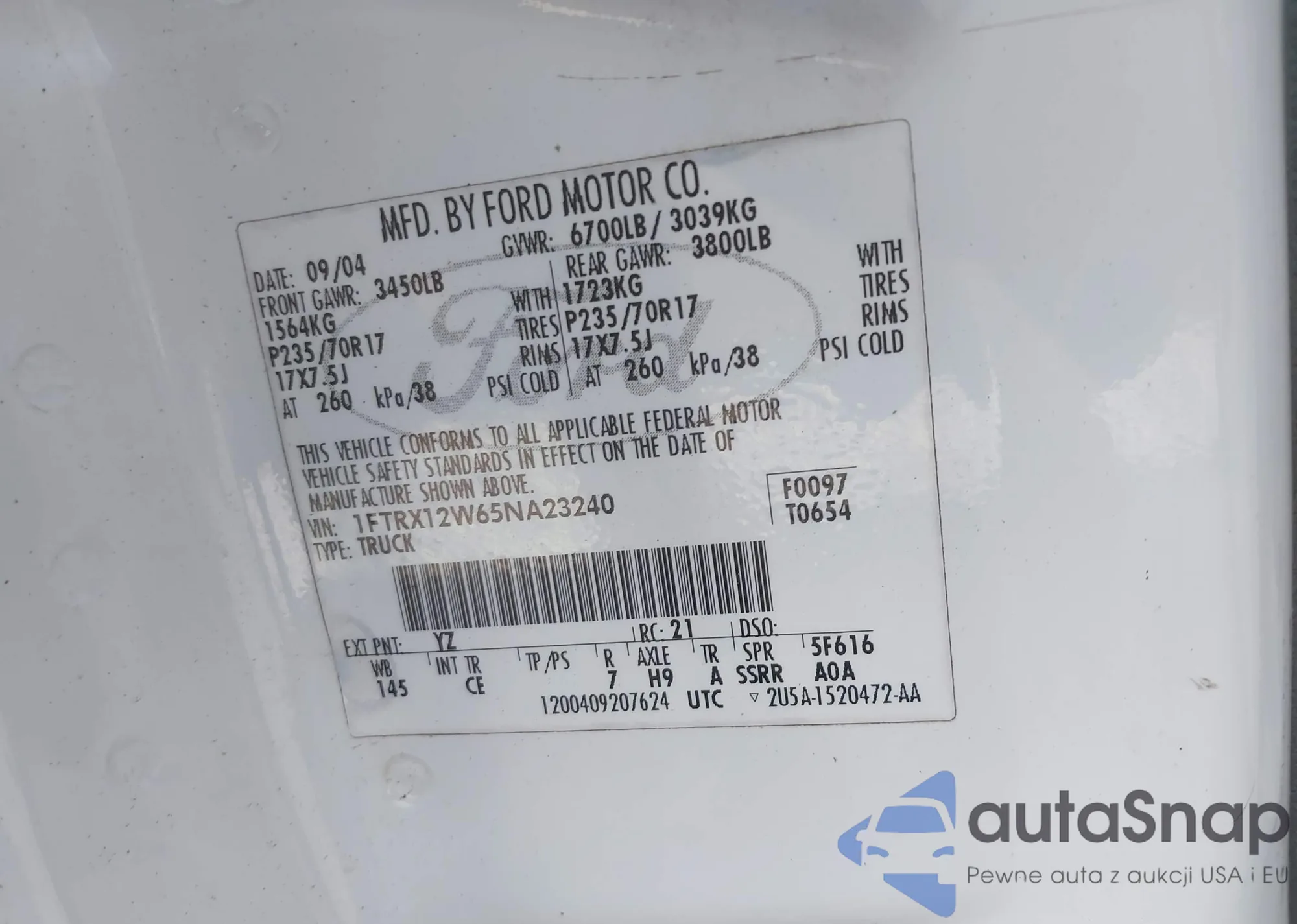 Ford F-150 2005 – Historia pojazdu (sprzedany na IAAI)