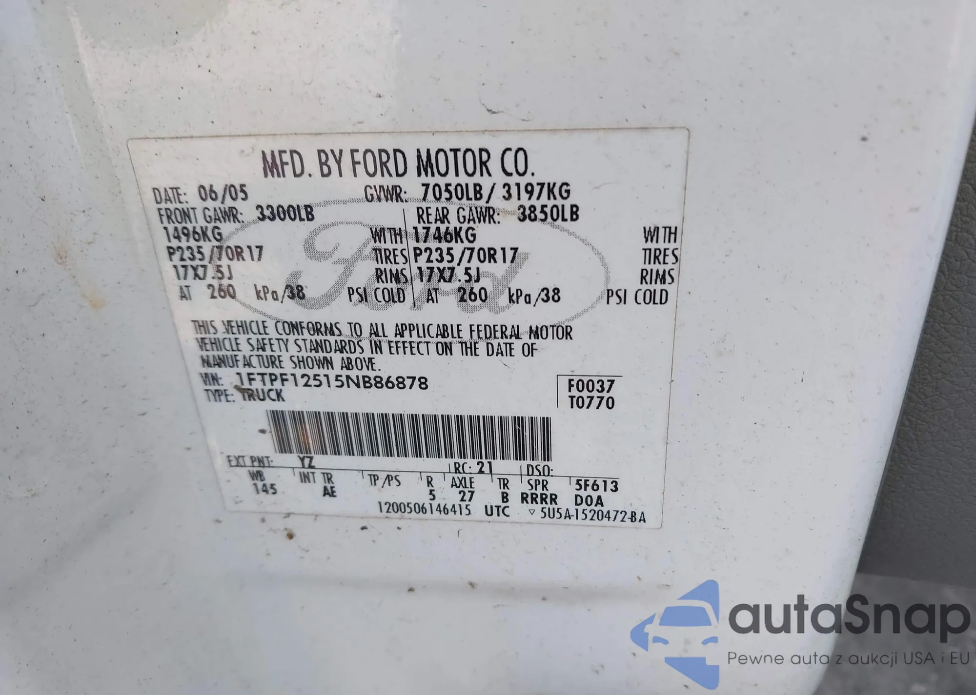 VIN: 1FTPF12515NB86878