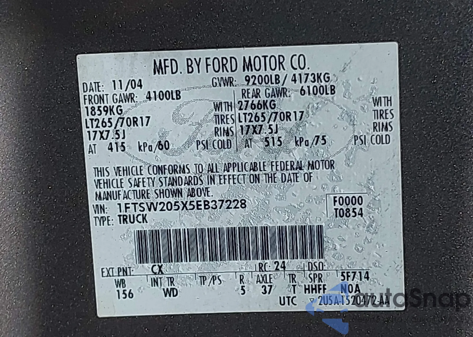 VIN: 1FTSW205X5EB37228
