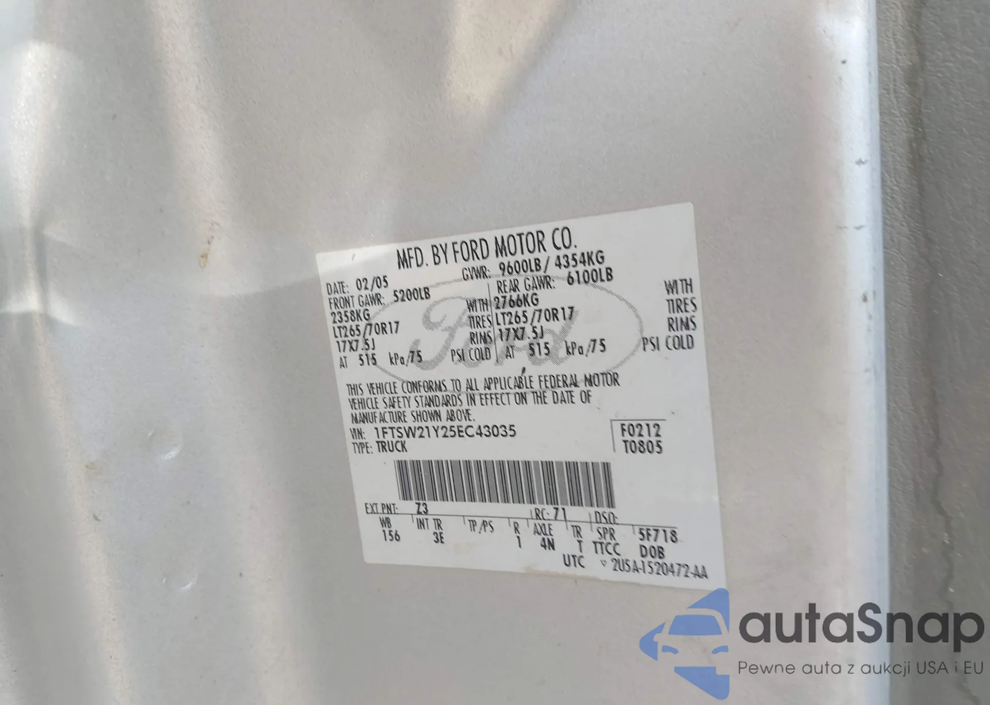 VIN: 1FTSW21Y25EC43035