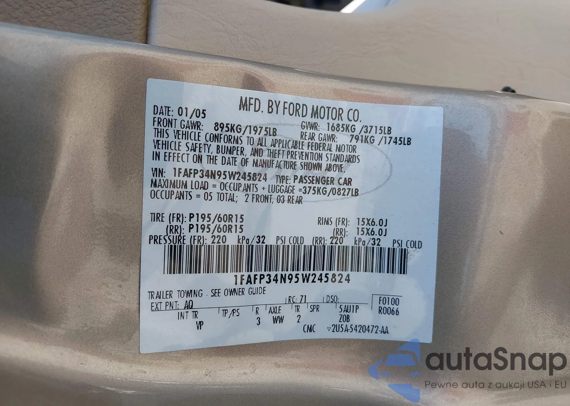 VIN: 1FAFP34N95W245824