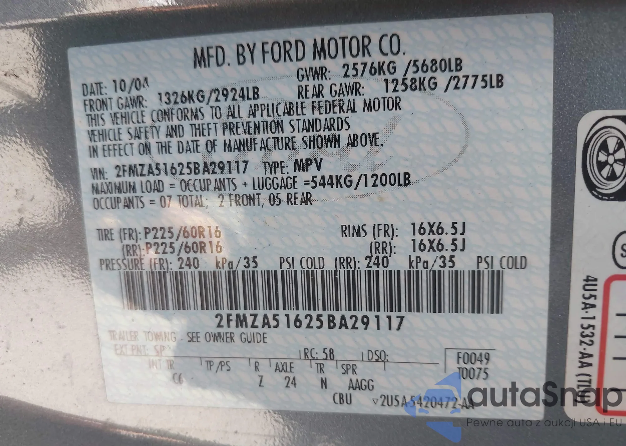 VIN: 2FMZA51625BA29117