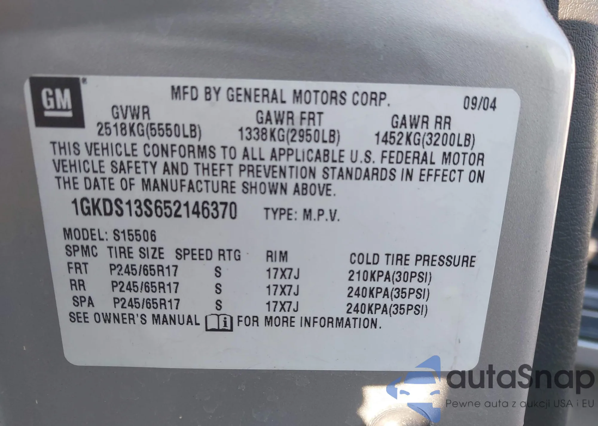 • VIN: 1GKDS13S652146370