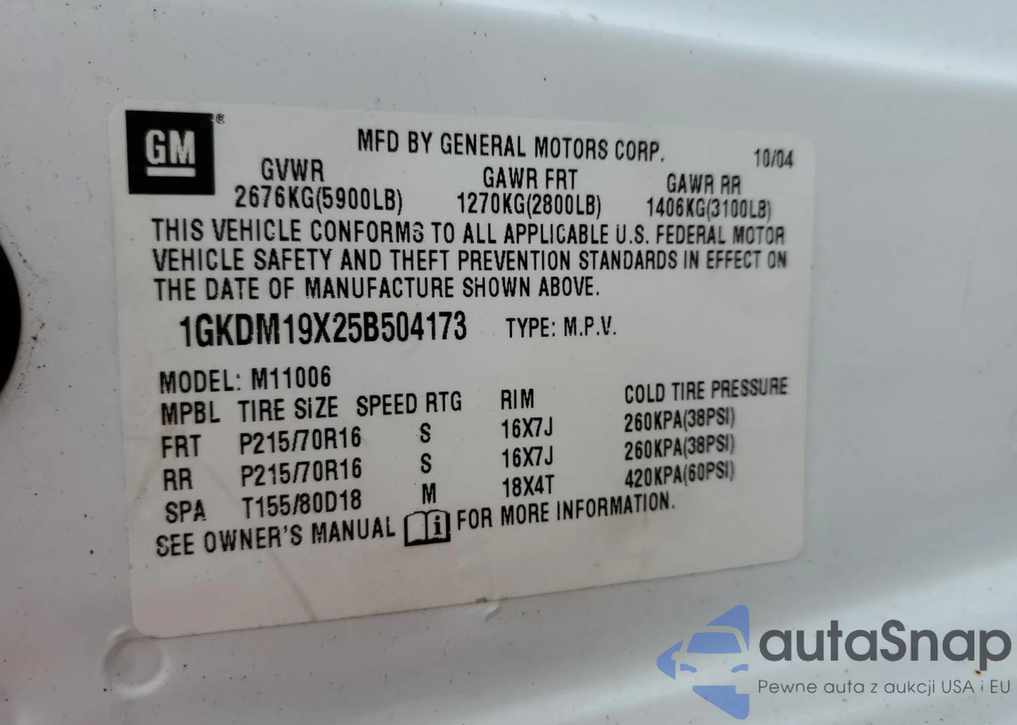 VIN: 1GKDM19X25B504173