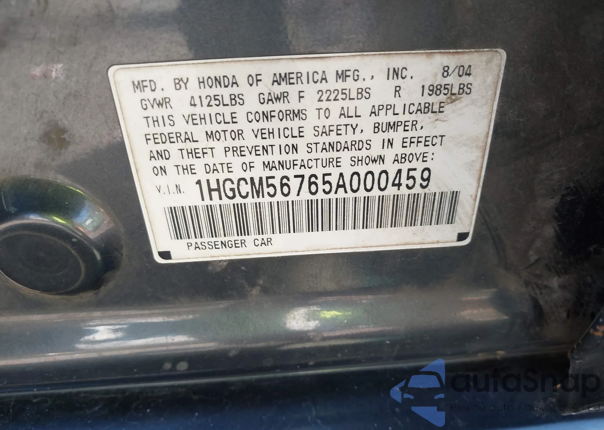 VIN: 1HGCM56765A000459