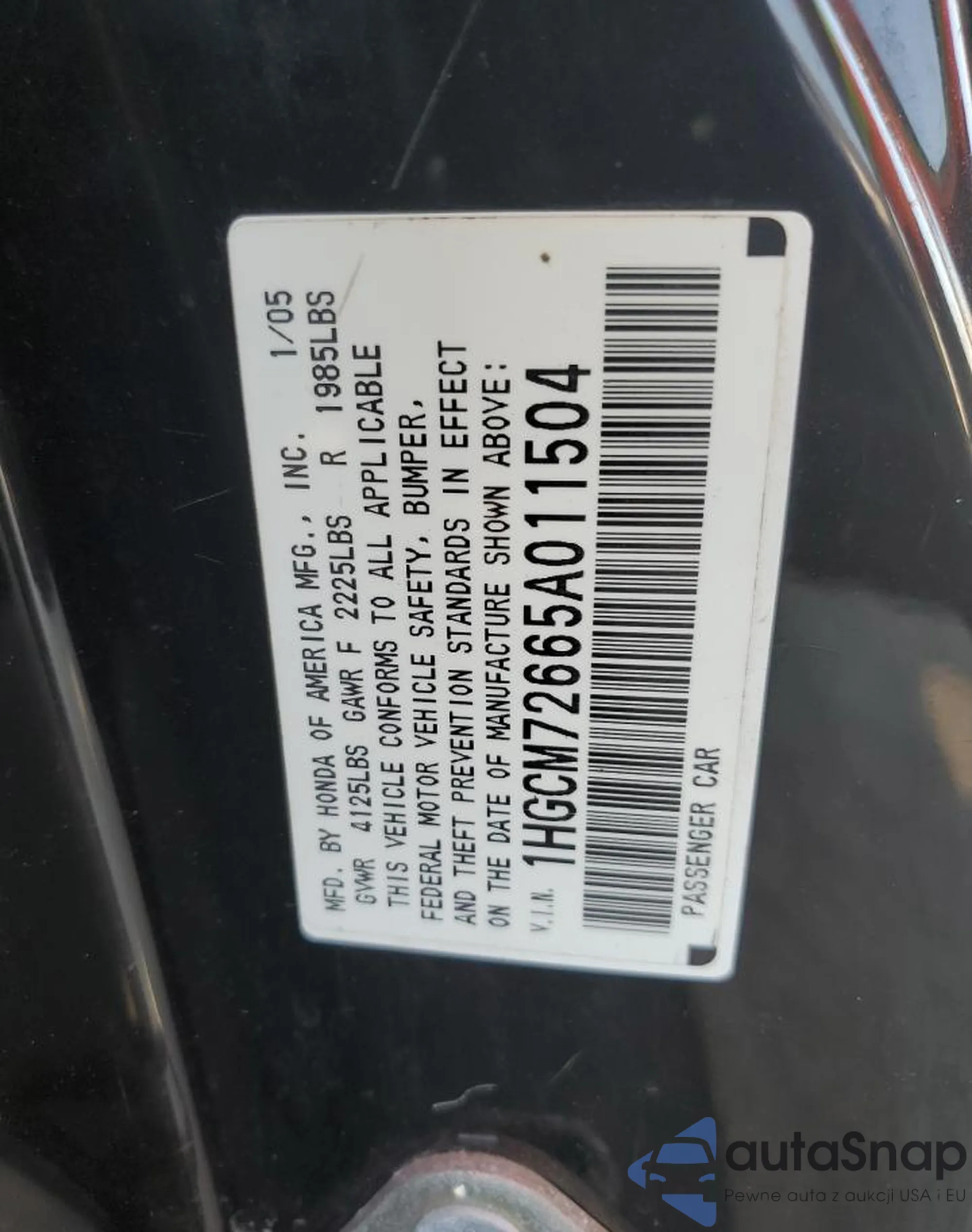 VIN: 1HGCM72665A011504