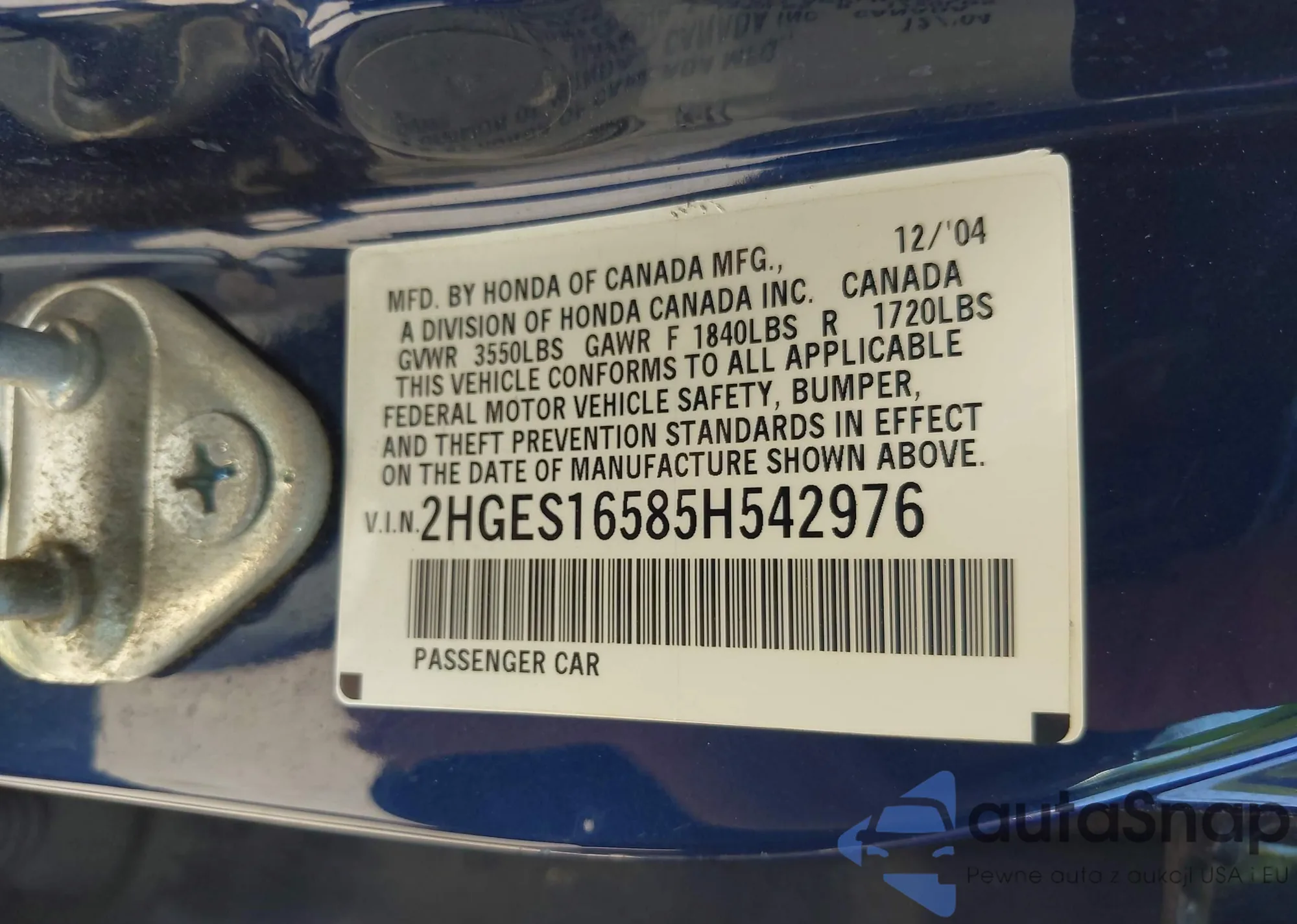 VIN: 2HGES16585H542976