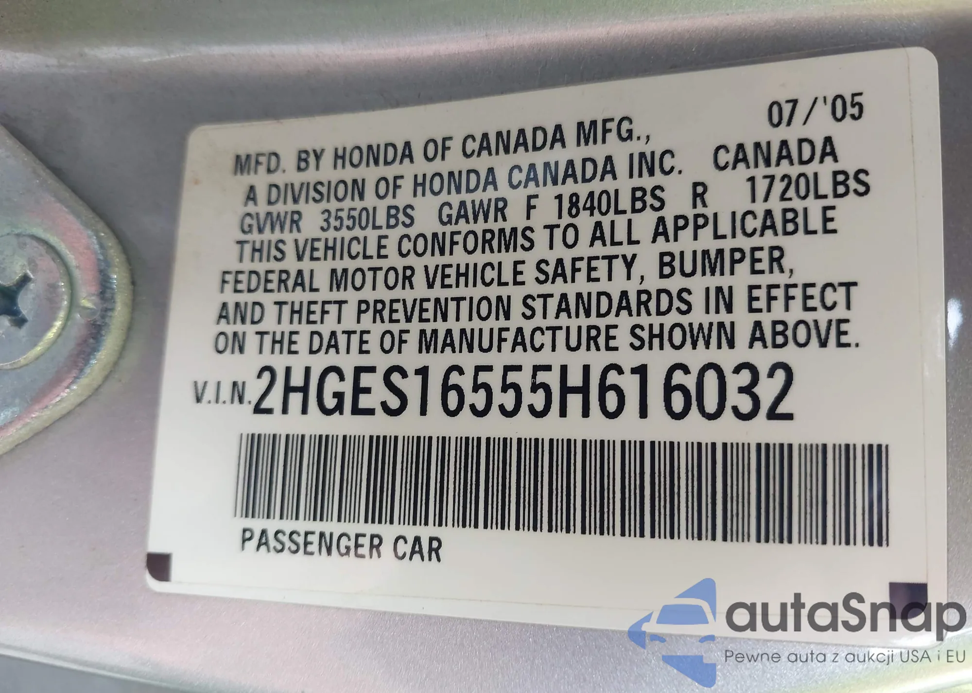 VIN: 2HGES16555H616032