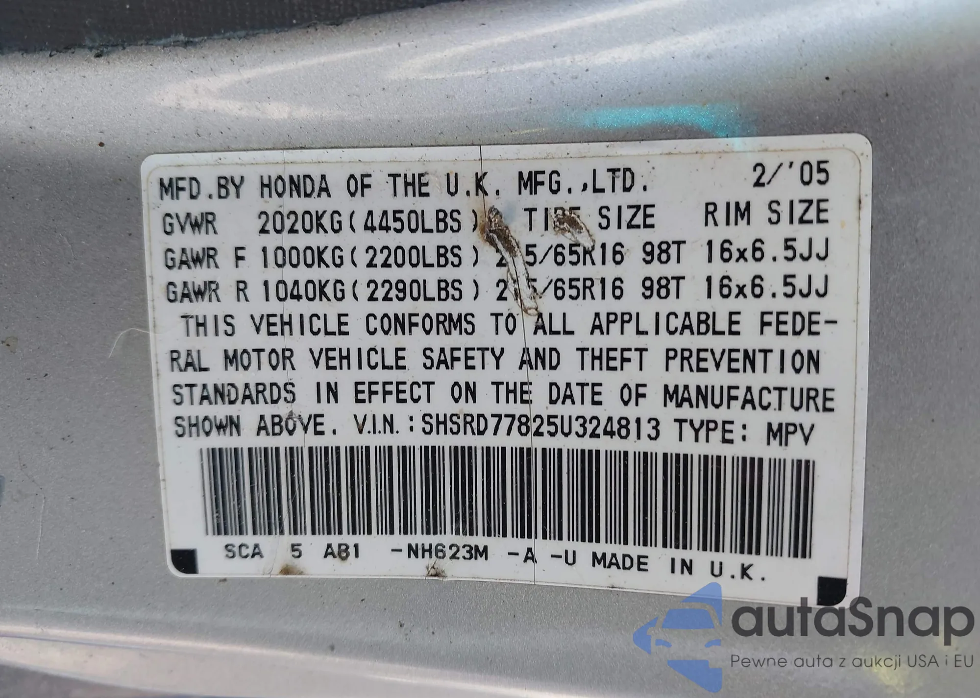 VIN: SHSRD77825U324813