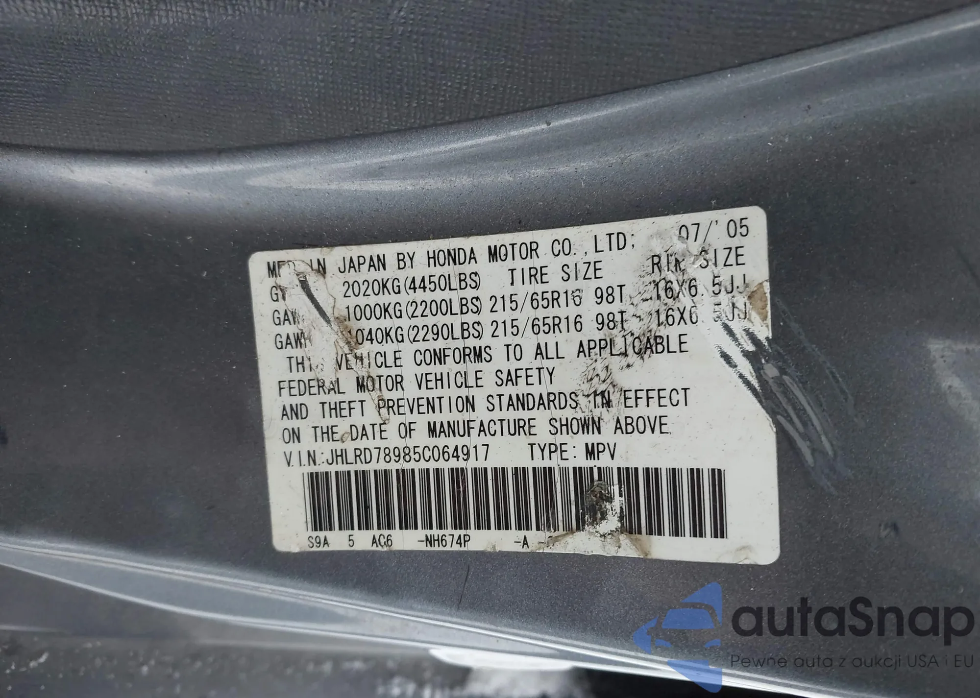 VIN: JHLRD78985C064917