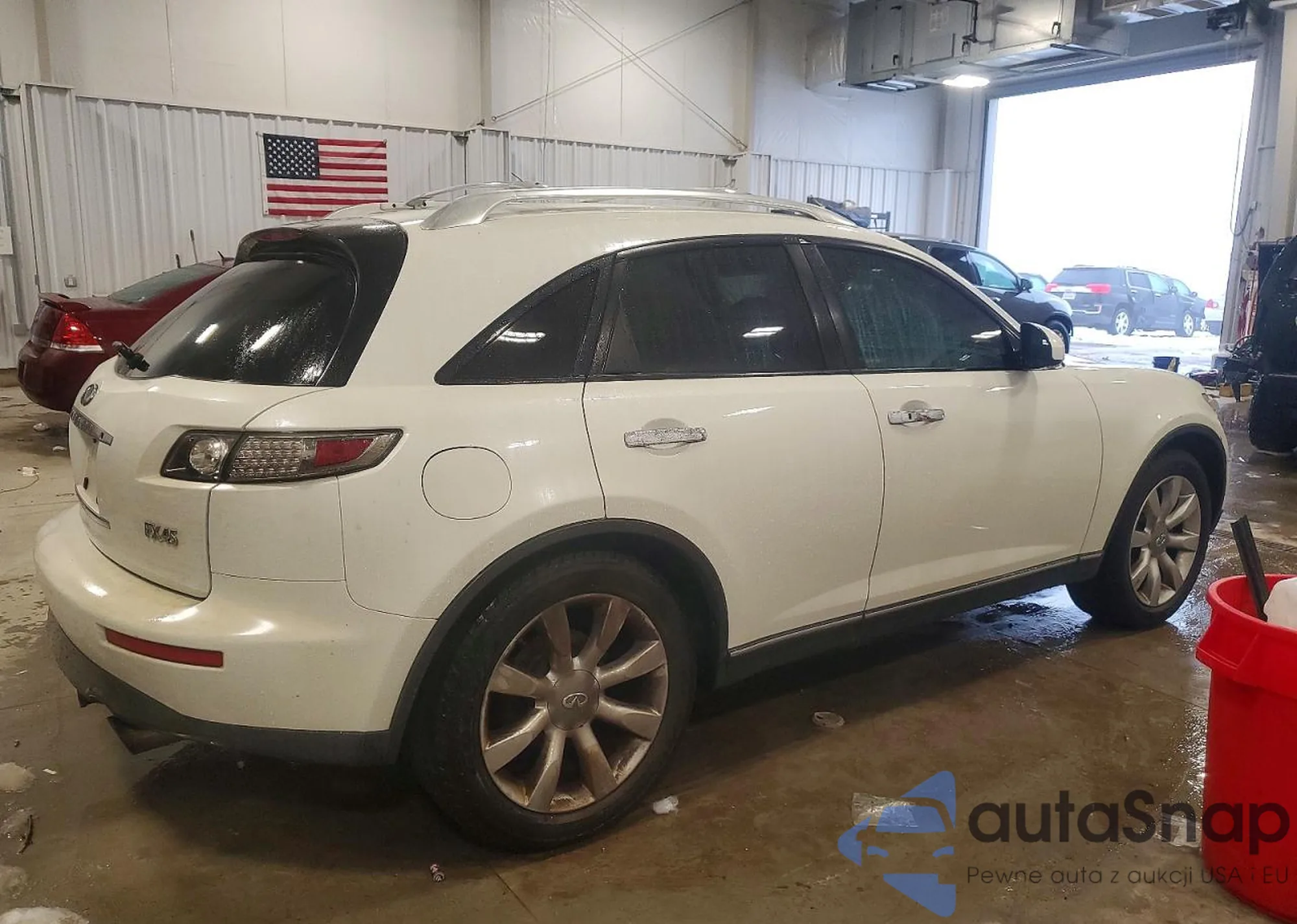 Samochód Infiniti FX 2005 (VIN JNRBS08W95X401685) nie był wcześniej licytowany. Dokumenty są czyste, przebieg odpowiada lub jest niższy niż średnia rynku. Sprzedaje go firma ubezpieczeniowa – polecamy zakup. Dostawa do portu zajmie ok. 6–8 tygodni.