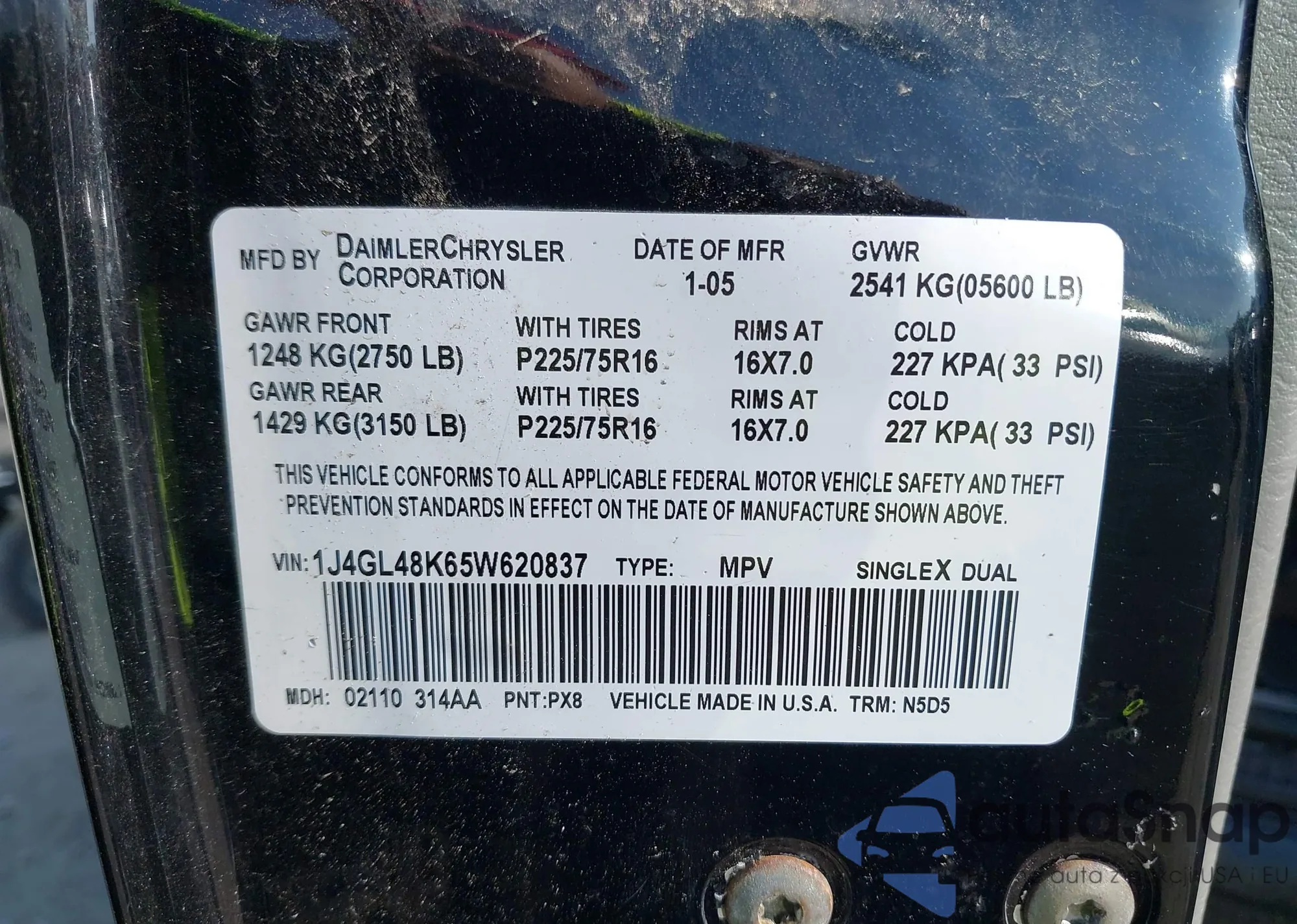 VIN: 1J4GL48K65W620837