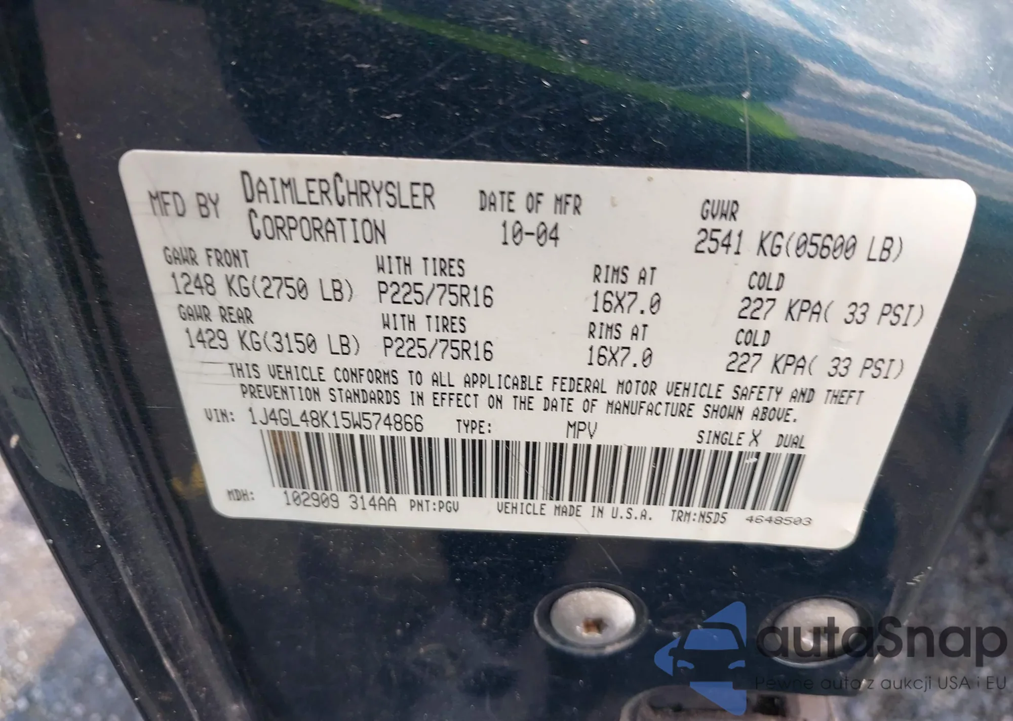 VIN: 1J4GL48K15W574866