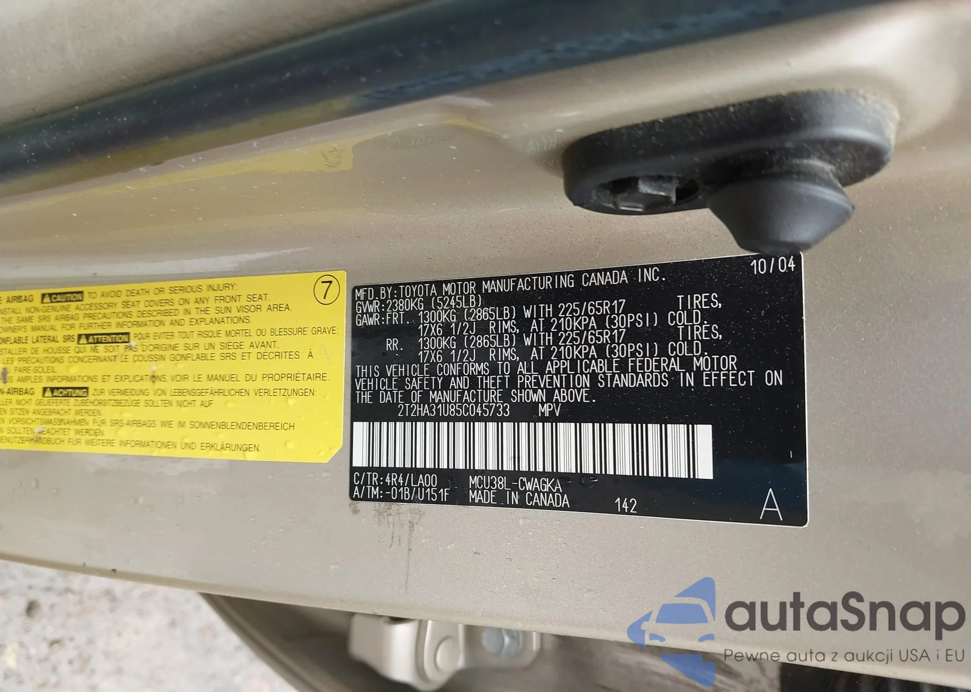 VIN: 2T2HA31U85C045733