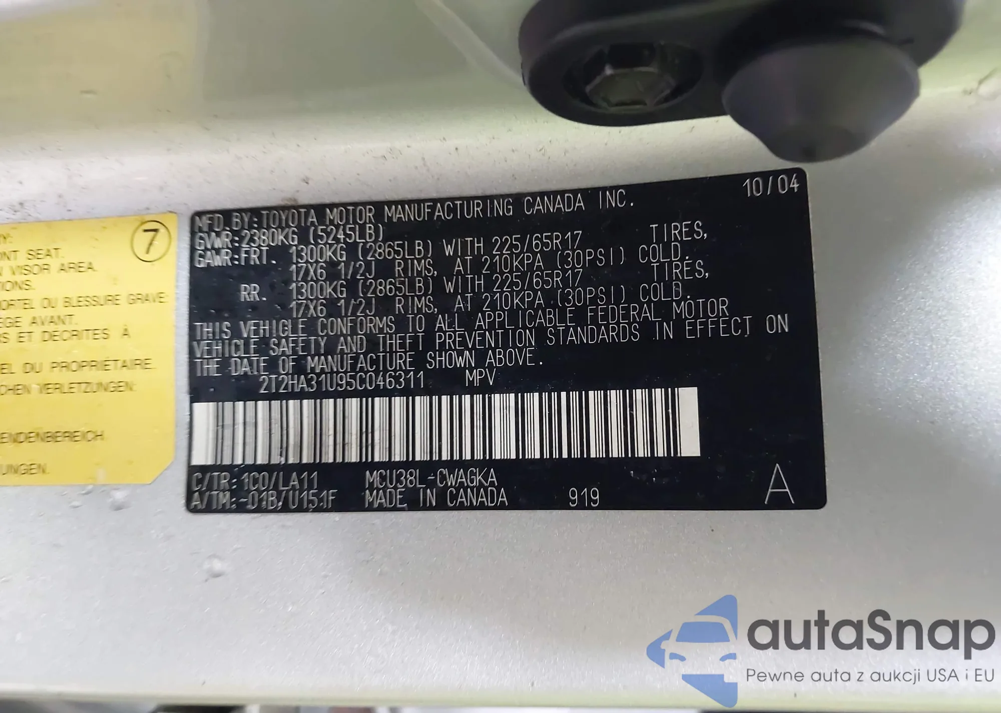 VIN: 2T2HA31U95C046311