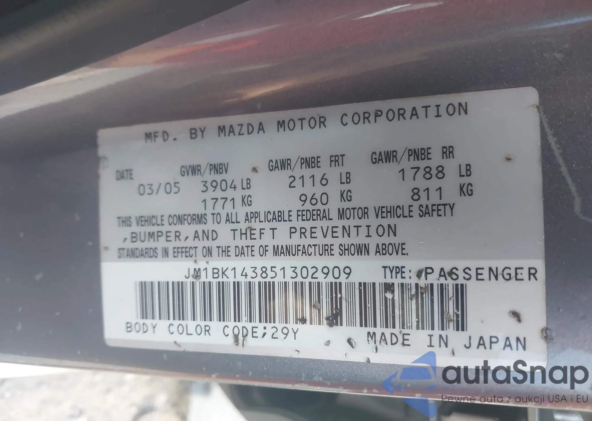 VIN: JM1BK143851302909