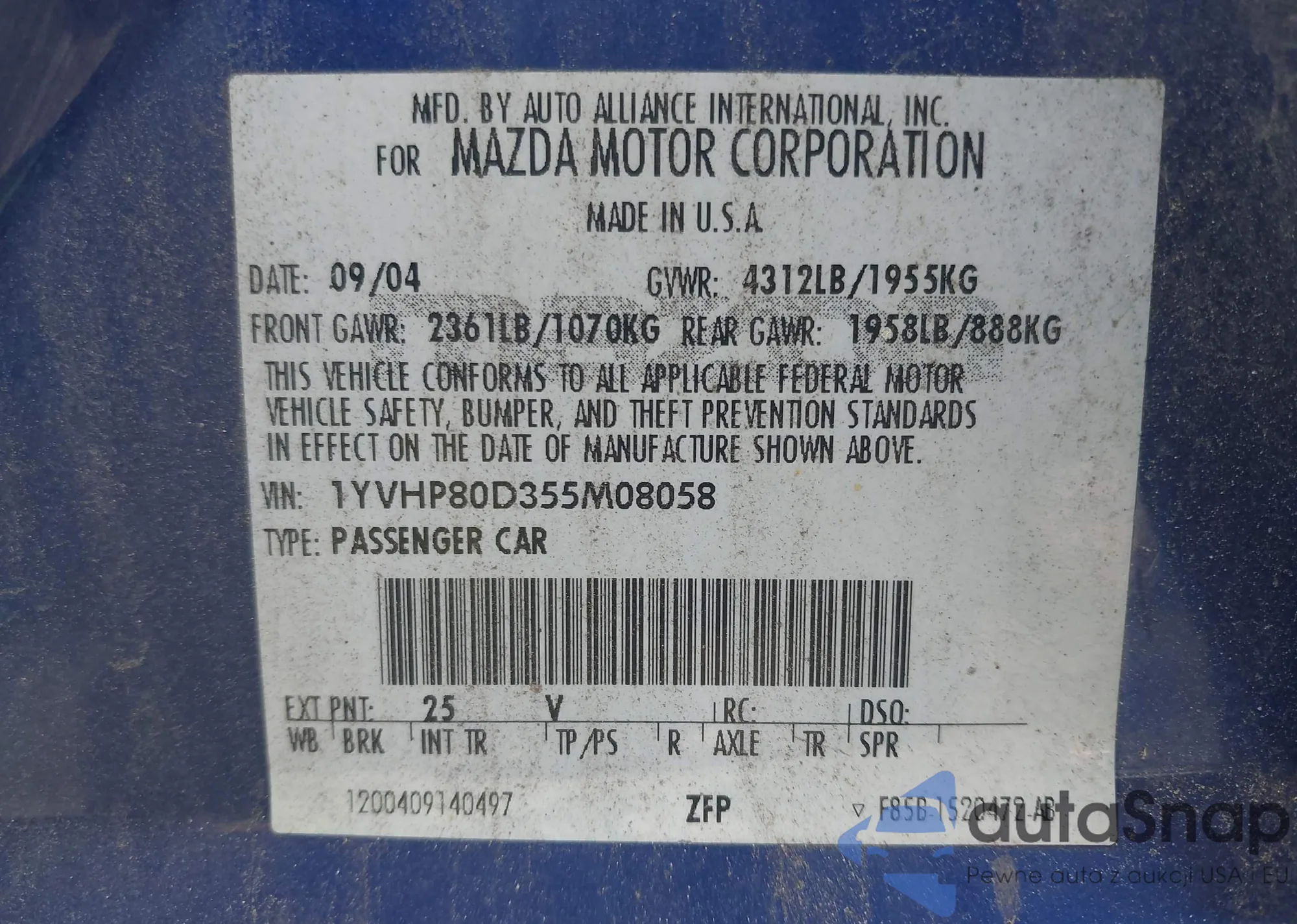 VIN: 1YVHP80D355M08058