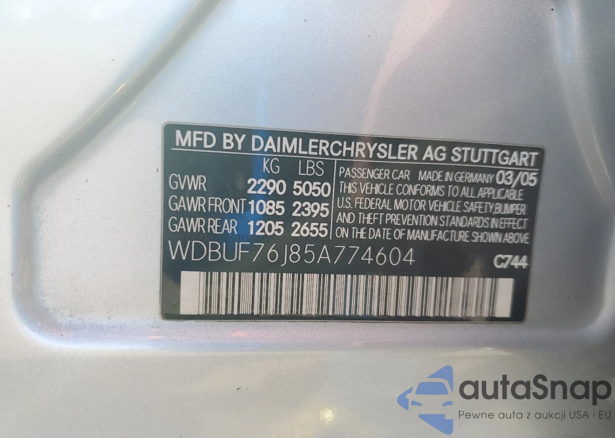 VIN: WDBUF76J85A774604