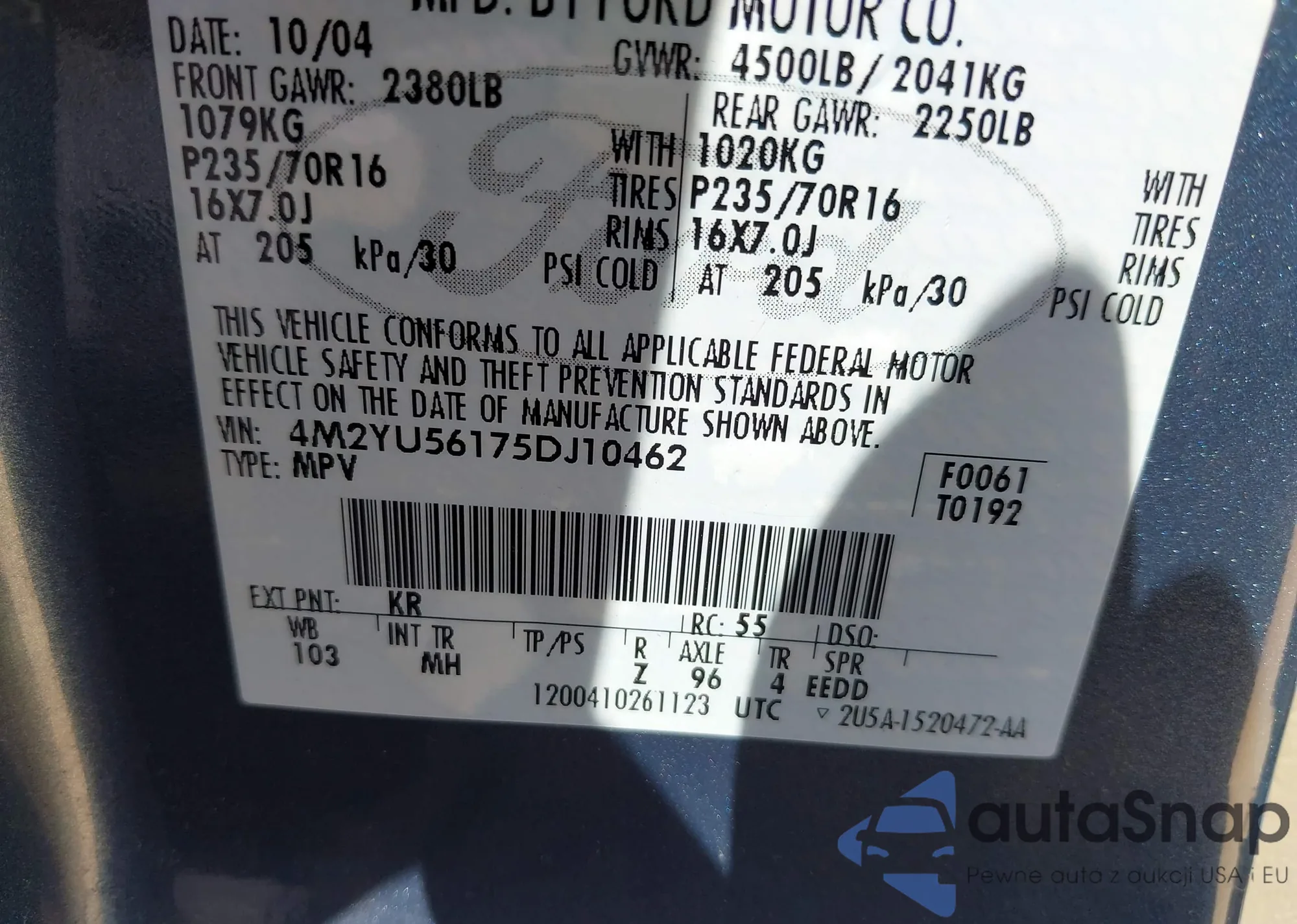 • VIN: 4M2YU56175DJ10462