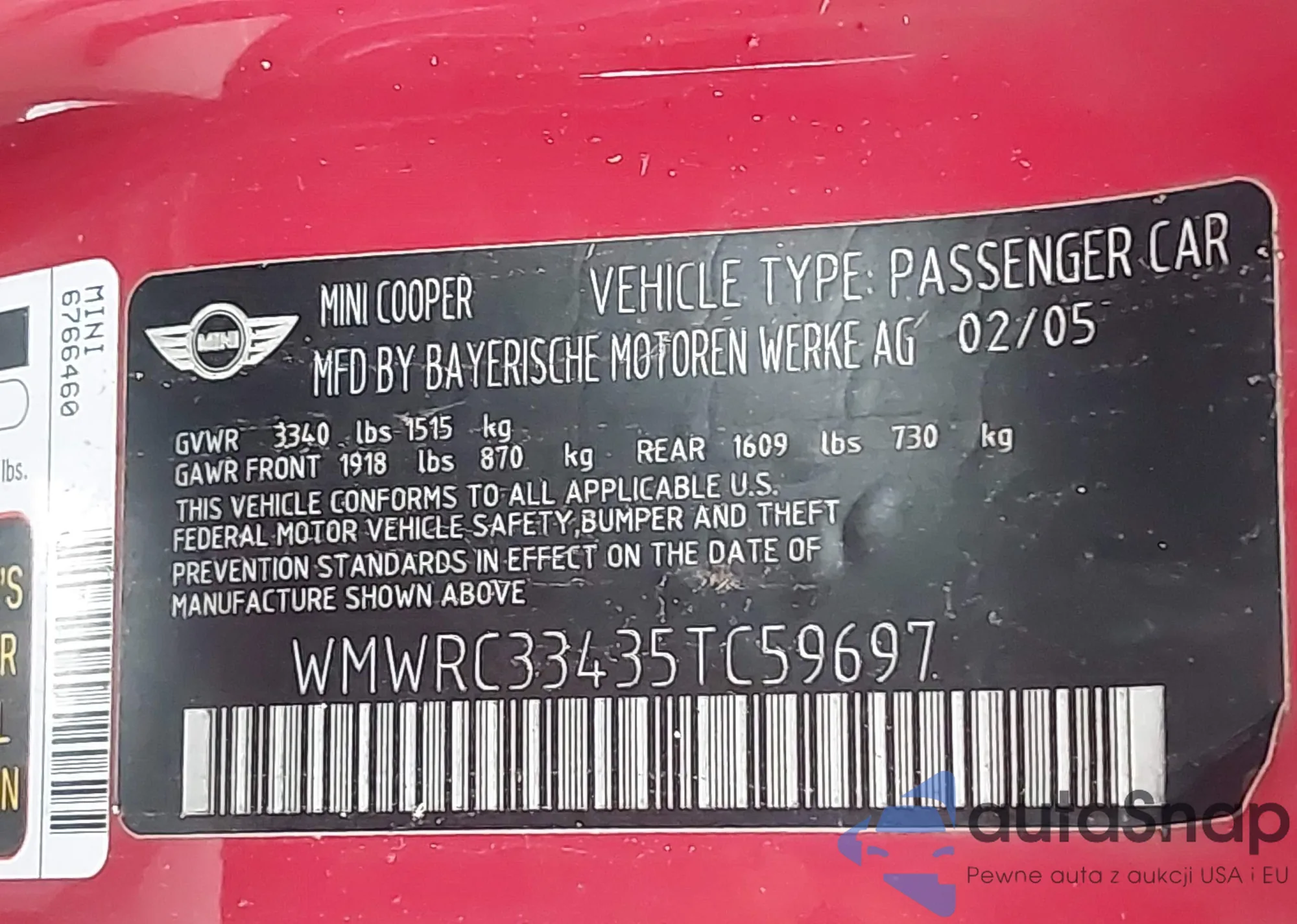 • VIN: WMWRC33435TC59697