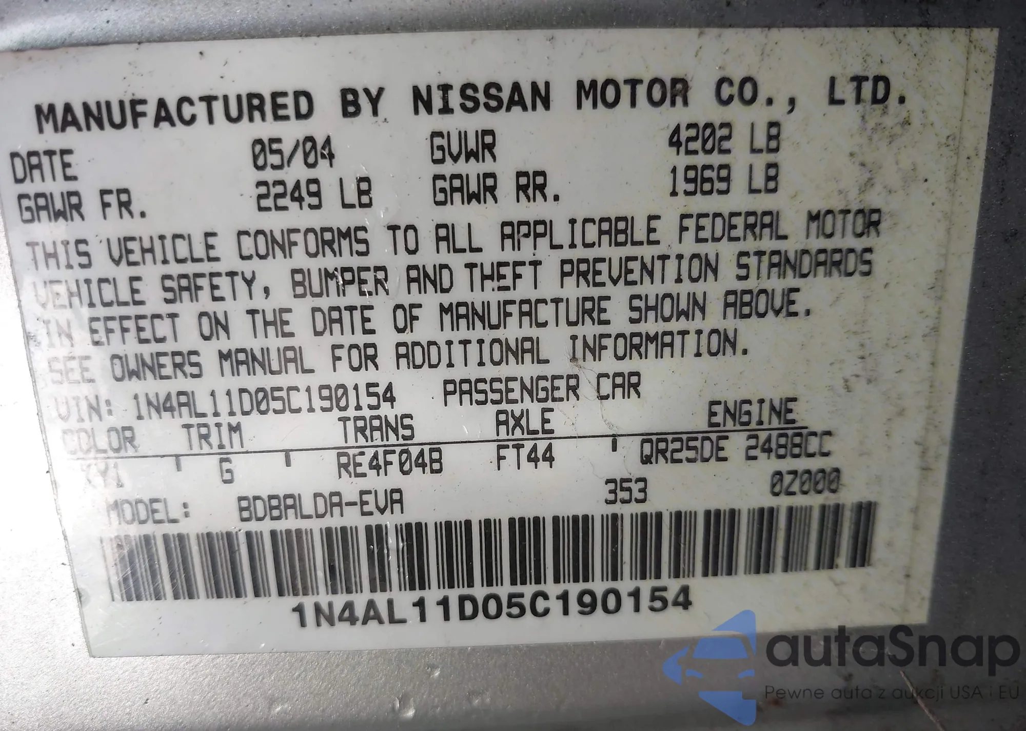 VIN: 1N4AL11D05C190154