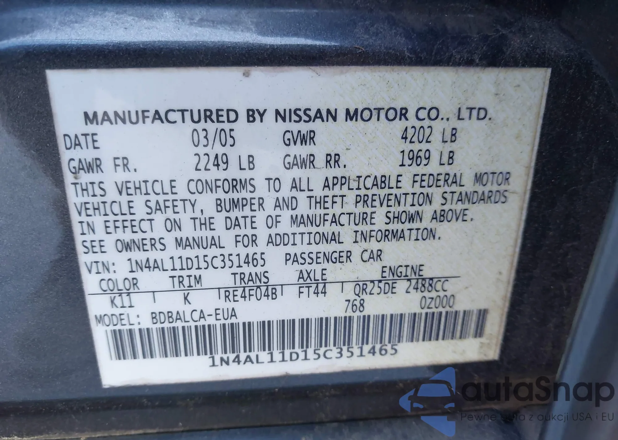 VIN: 1N4AL11D15C351465
