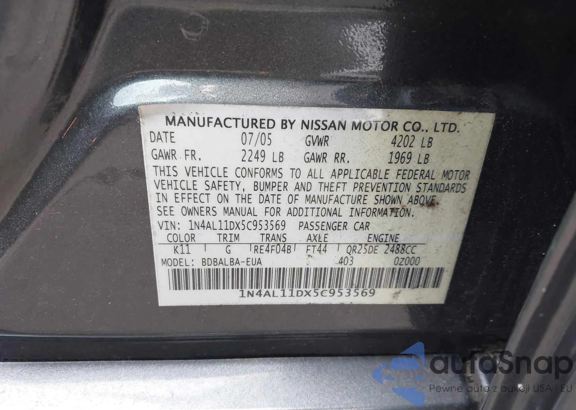 Nissan Altima 2005 – Historia pojazdu (sprzedany na IAAI)
