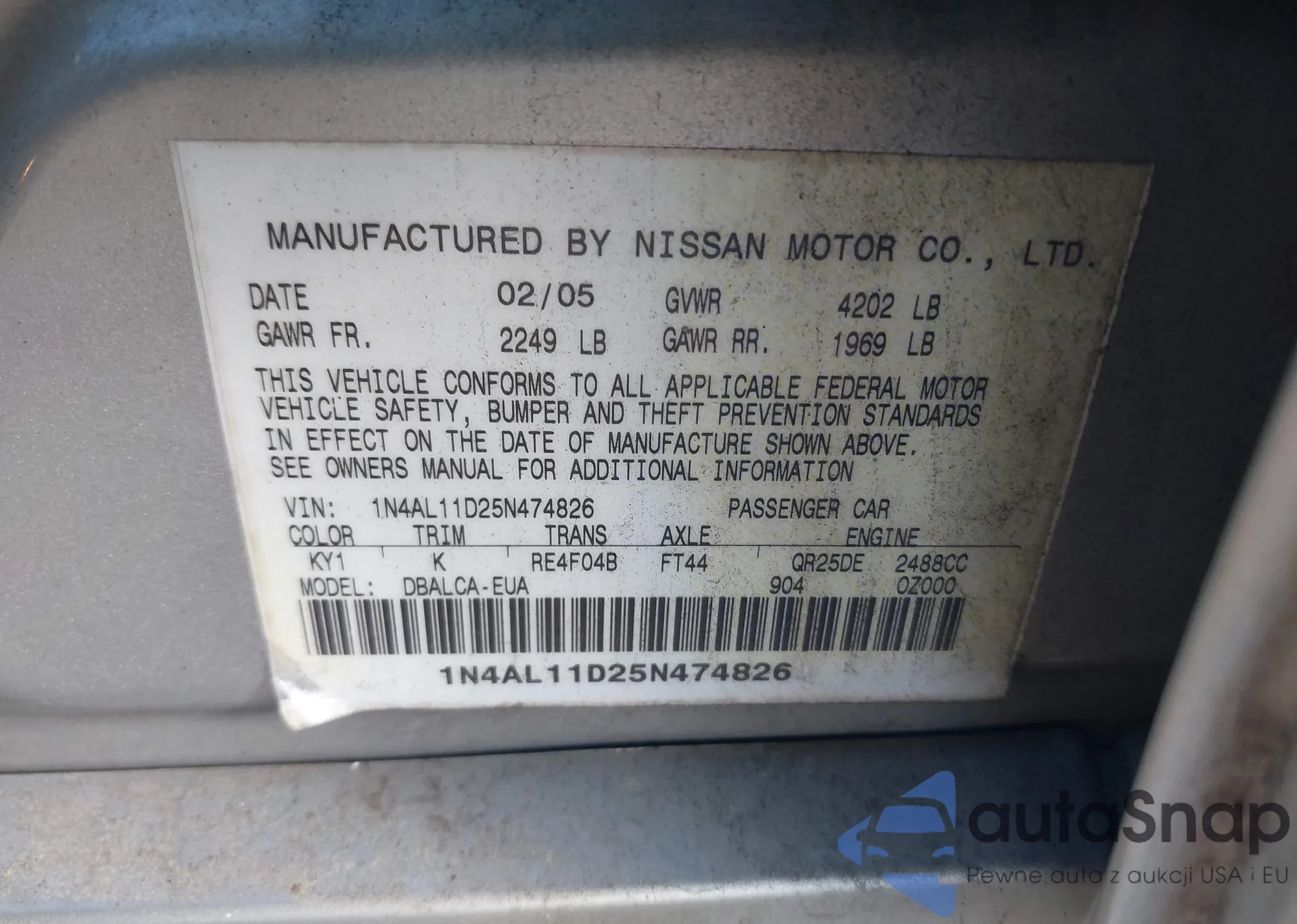 VIN: 1N4AL11D25N474826