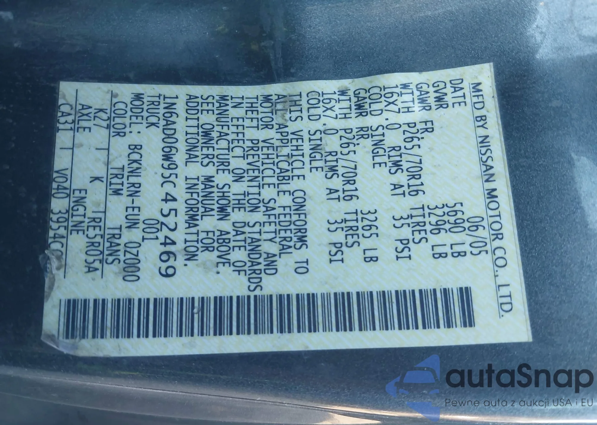 VIN: 1N6AD06W95C452469