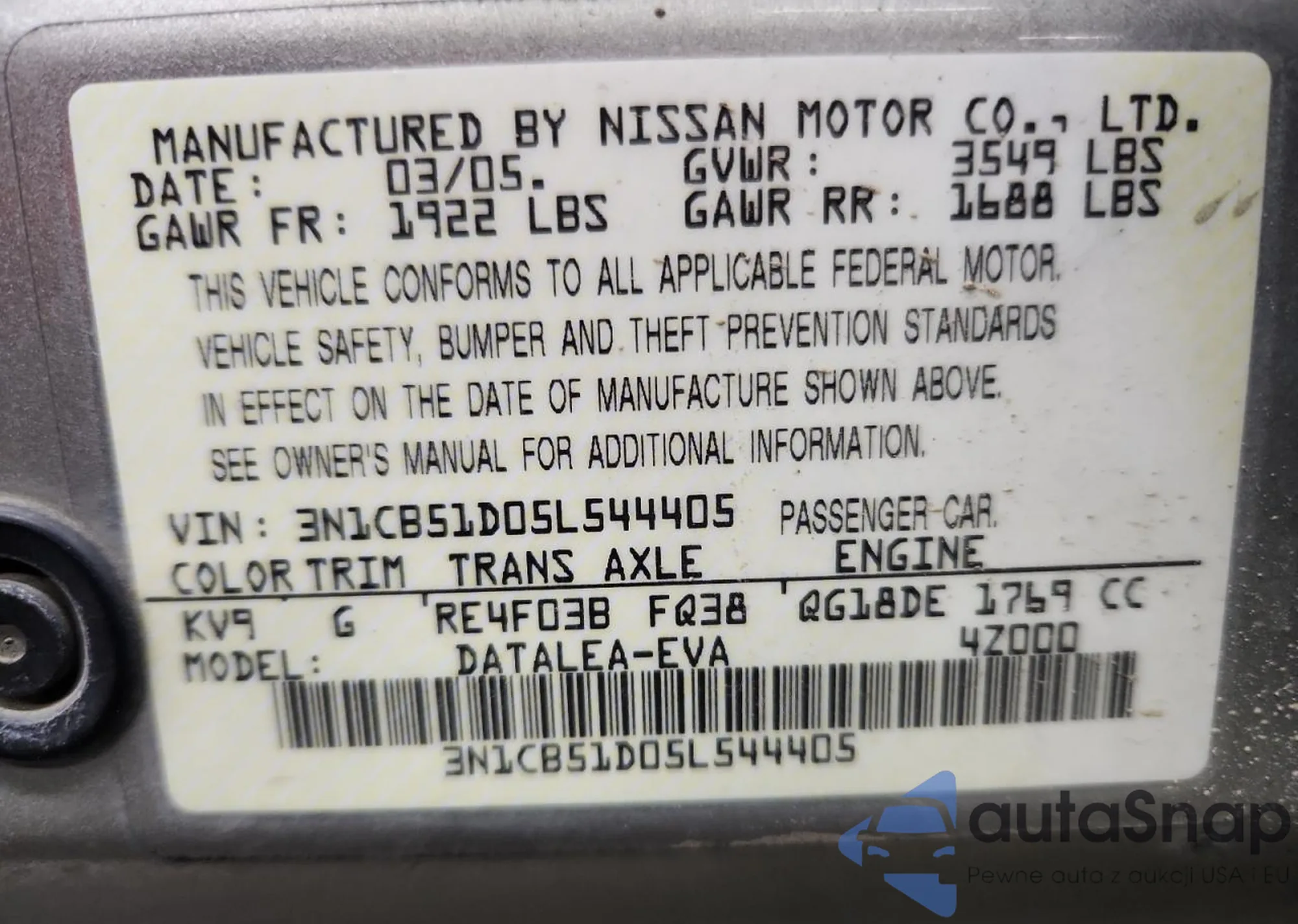 • VIN: 3N1CB51D05L544405