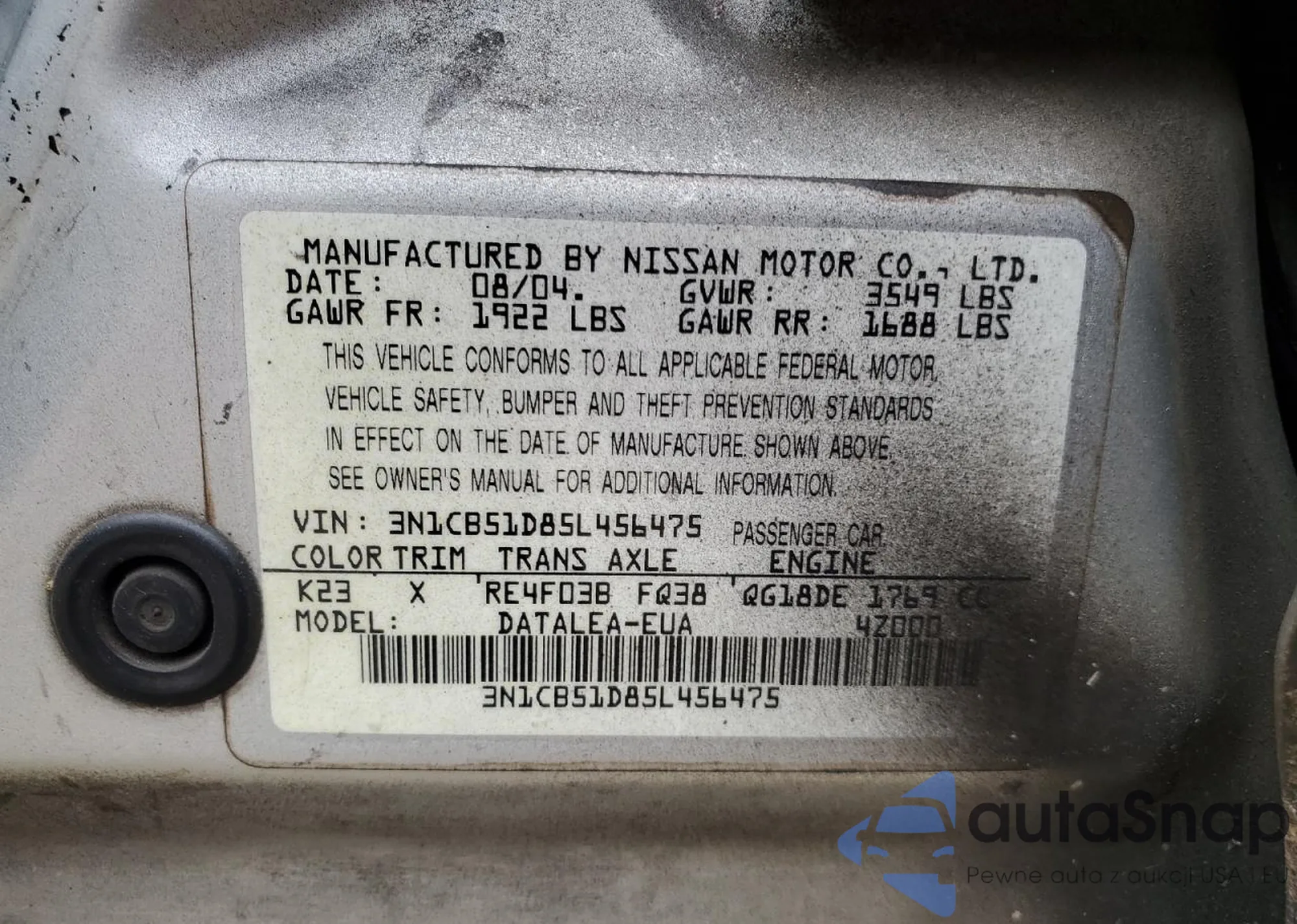 • VIN: 3N1CB51D85L456475